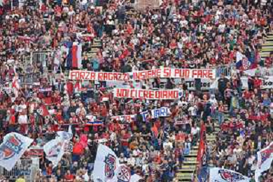 275-2023. Cagliari Calcio-Venezia F.C. Gara preliminare play off BKT 2022/2023, stadio Unipol Domus Cagliari. Foto Salvatore Moi/Aldo Liverani s.a.s. Nella foto: Sconvolts, tifosi del Cagliari Calcio in curva nord dello stadio Unipol Domus di Cagliari. ©MOI SALVATORE / AGENZIA ALDO LIVERANI SAS