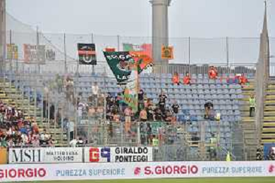 275-2023. Cagliari Calcio-Venezia F.C. Gara preliminare play off BKT 2022/2023, stadio Unipol Domus Cagliari. Foto Salvatore Moi/Aldo Liverani s.a.s. Nella foto: Tifosi del Venezia F.C. in trasferta, nel settore ospiti dello stadio Unipol Domus di Cagliari. ©MOI SALVATORE / AGENZIA ALDO LIVERANI SAS