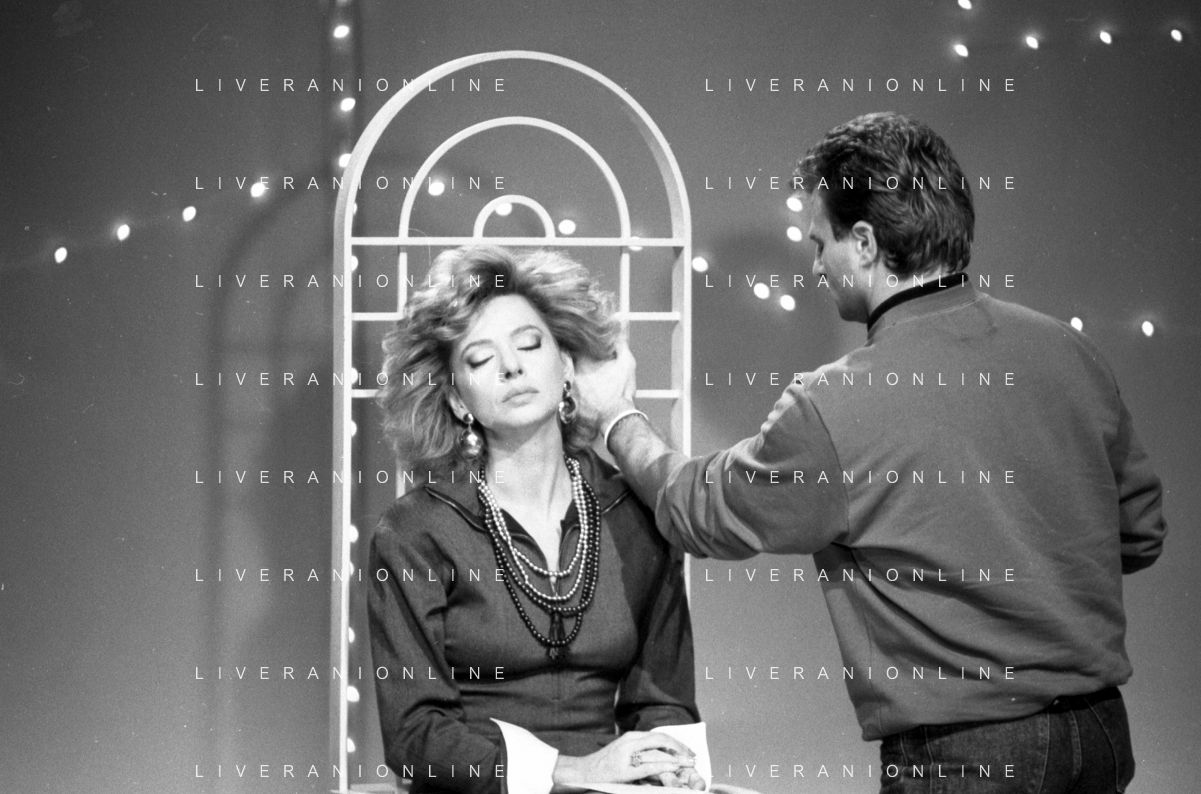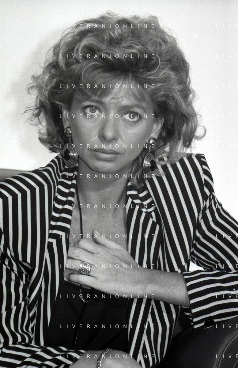 Neg- RETROSPETTIVA ENRICA BONACCORTI CONDUTTRICE TELEVISIVA NELLA FOTO A MILANO NELL'ANNO 1988 CONDUCE IL PROGRAMMA 'CARI GENITORI' AG ALDO LIVERANI SAS