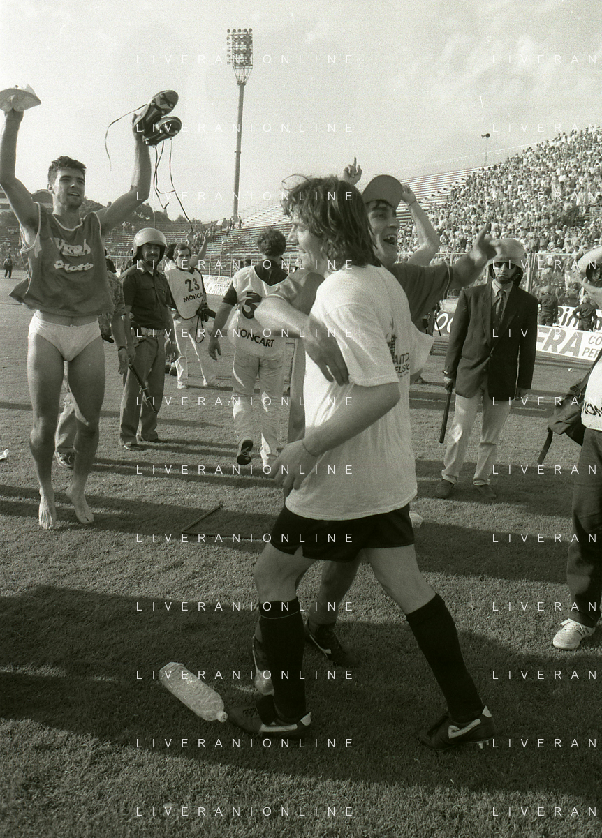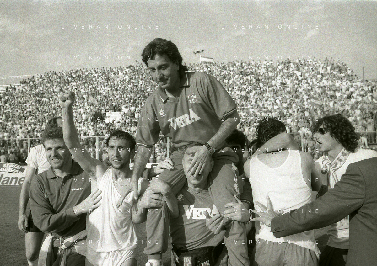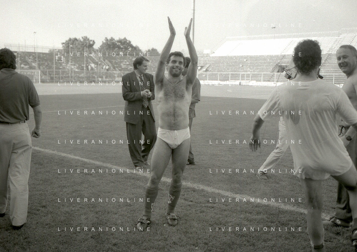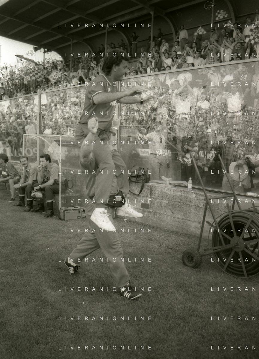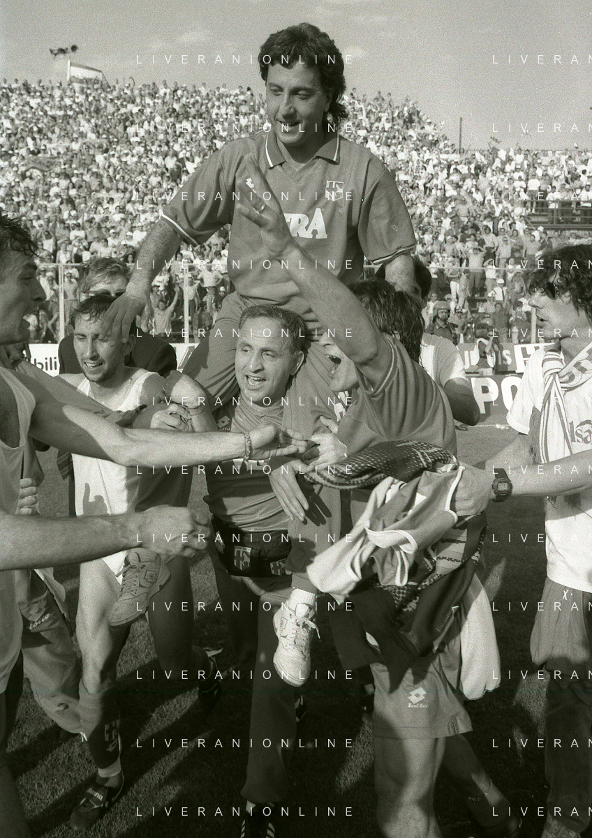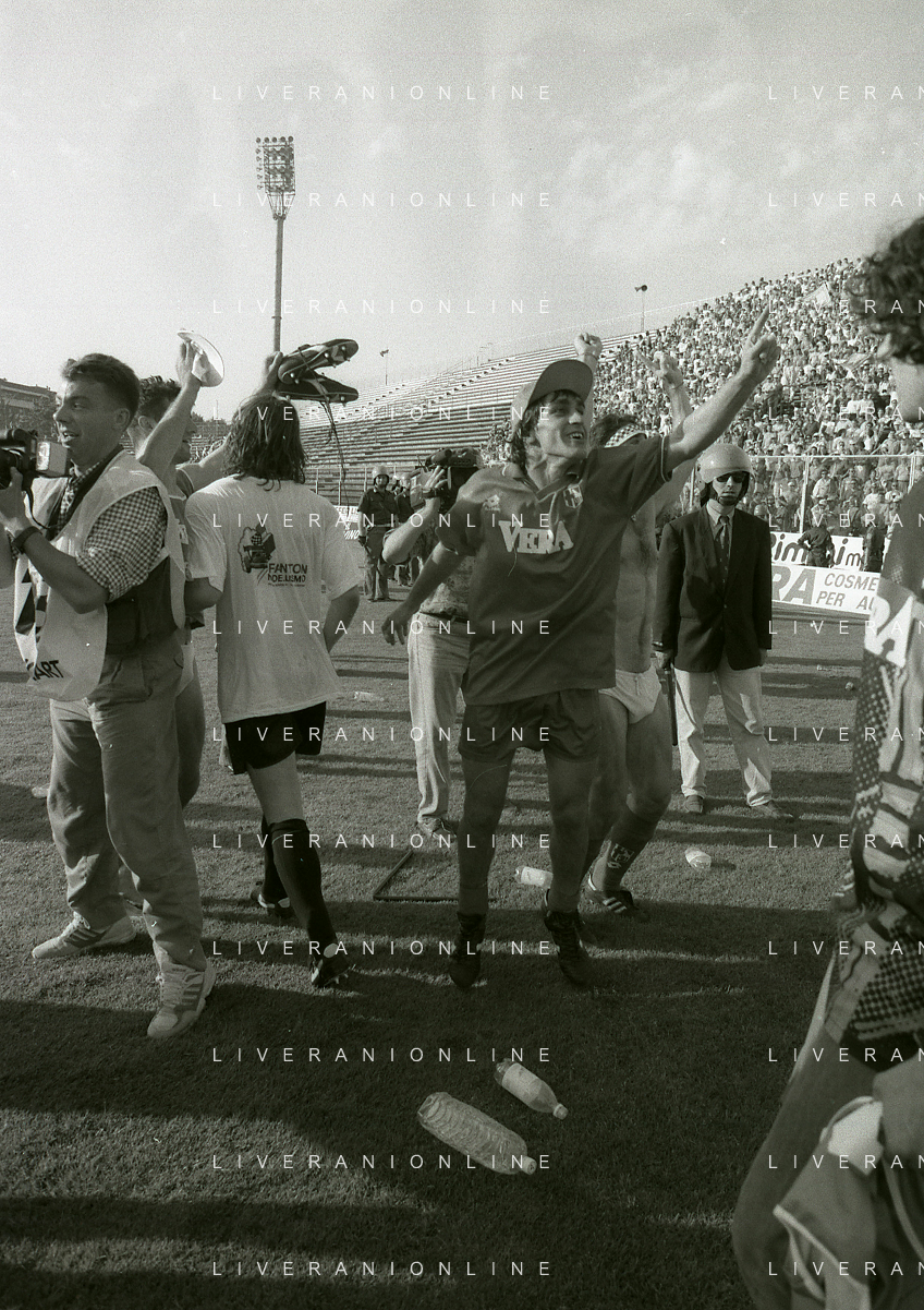 NEG- 15-06-1994 CREMONA SPAREGGIO PER LA PROMOZIONE IN SERIE A PADOVA-CESENA 2-1 NELLA FOTO GIUSEPPE GALDERISI A FINE GARA FESTEGGIA LA PROMOZIONE IN SERIE A AG ALDO LIVERANI SAS