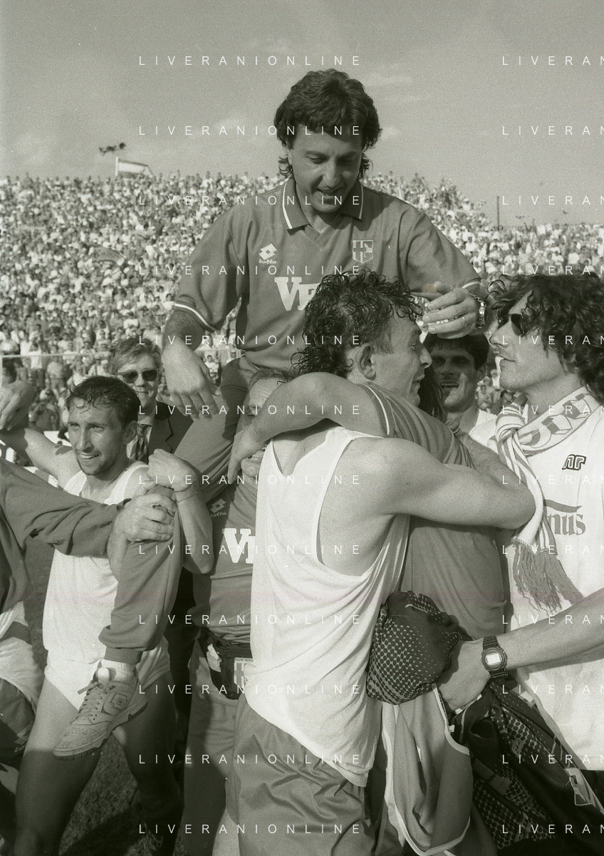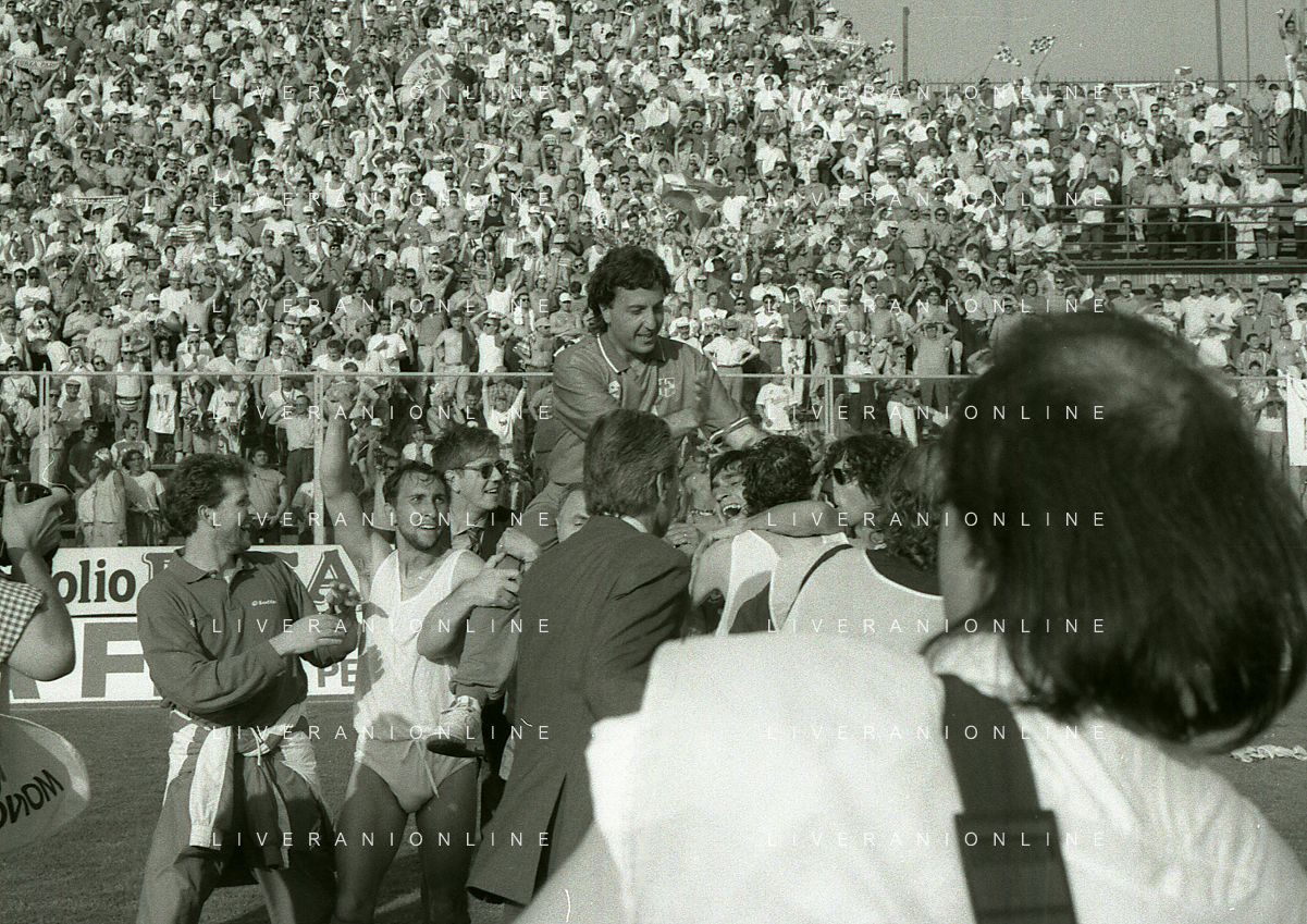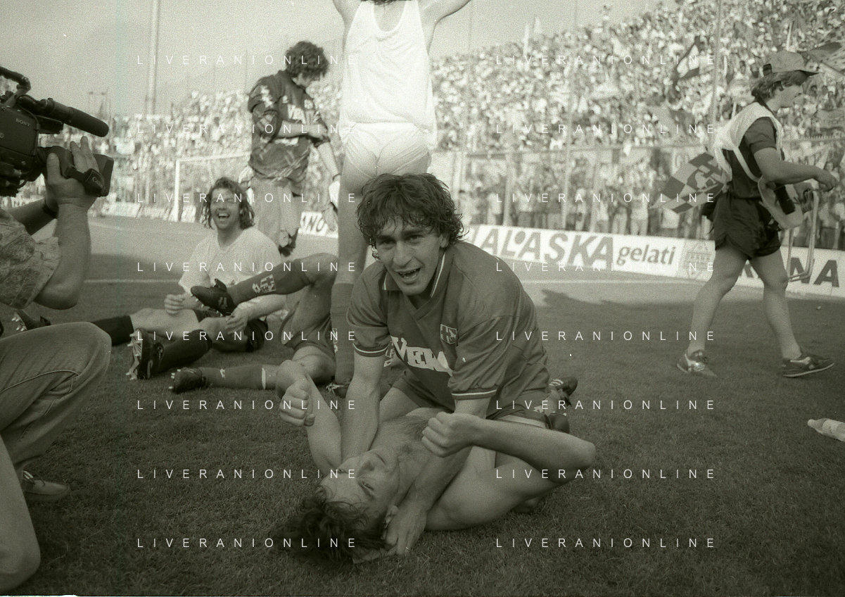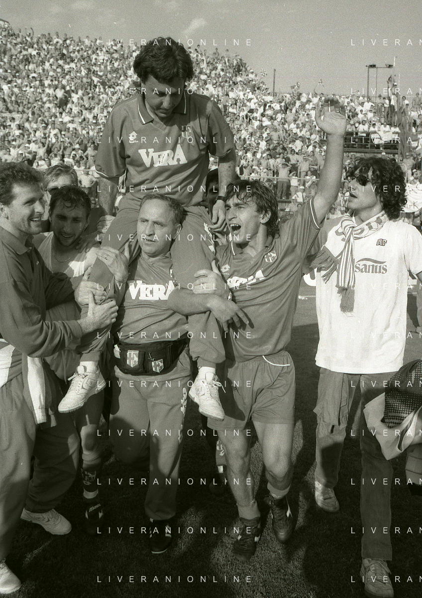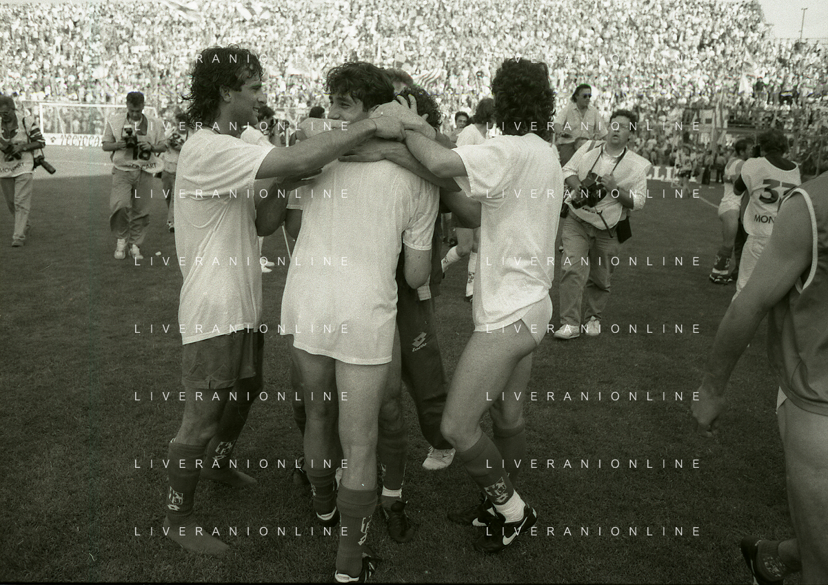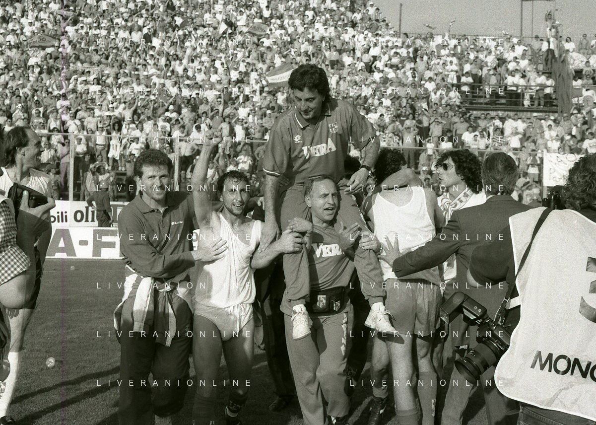 NEG- 15-06-1994 CREMONA SPAREGGIO PER LA PROMOZIONE IN SERIE A PADOVA-CESENA 2-1 NELLA FOTO GIUSEPPE GALDERISI A FINE GARA FESTEGGIA LA PROMOZIONE IN SERIE A AG ALDO LIVERANI SAS