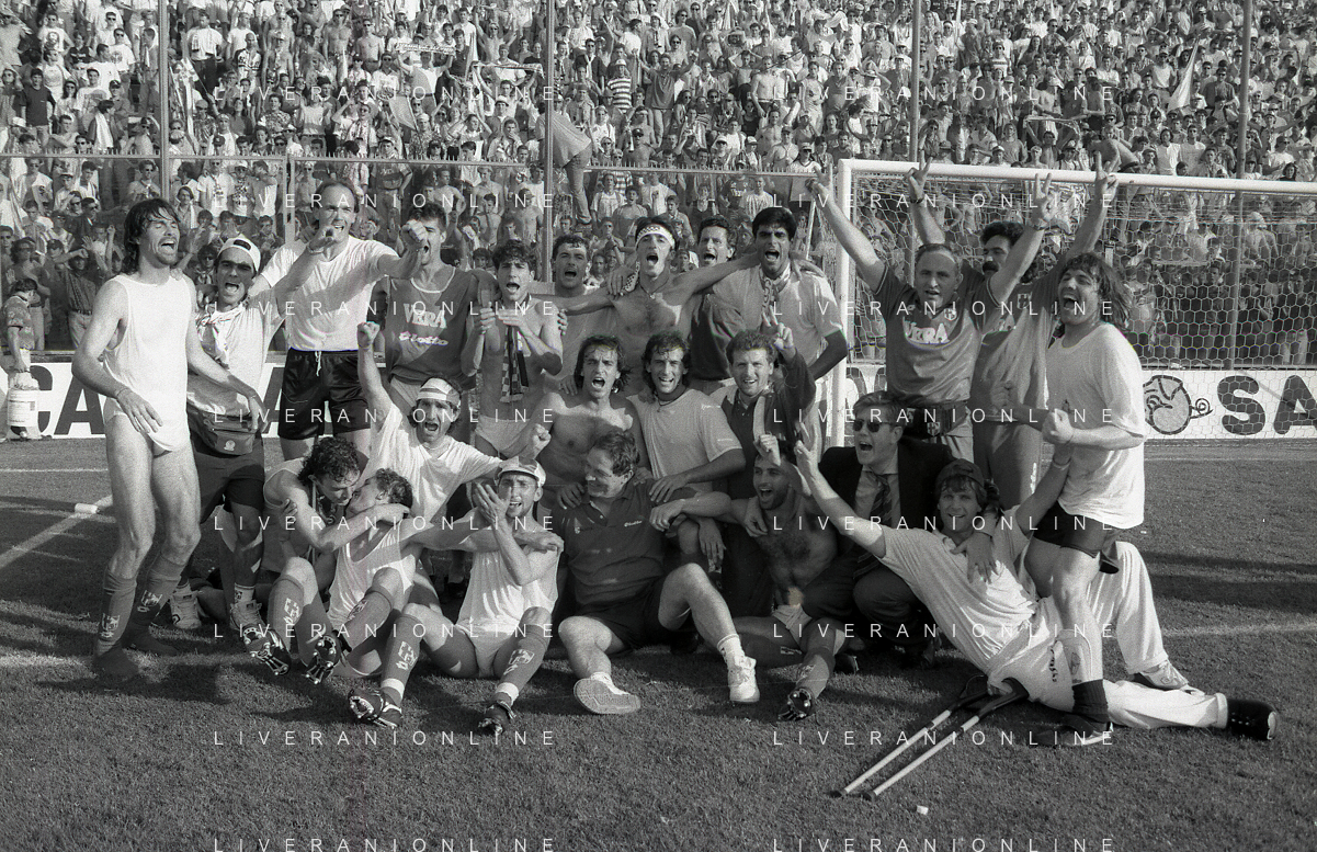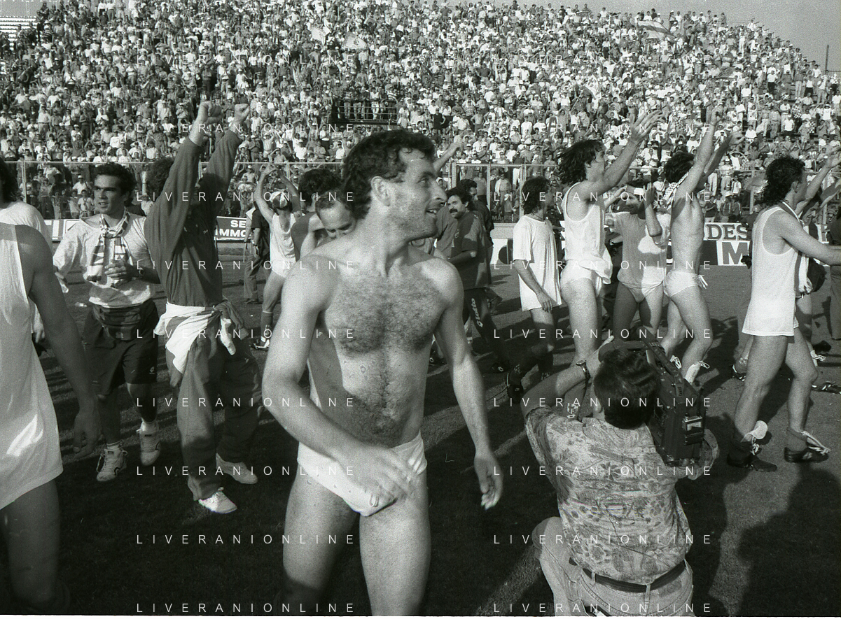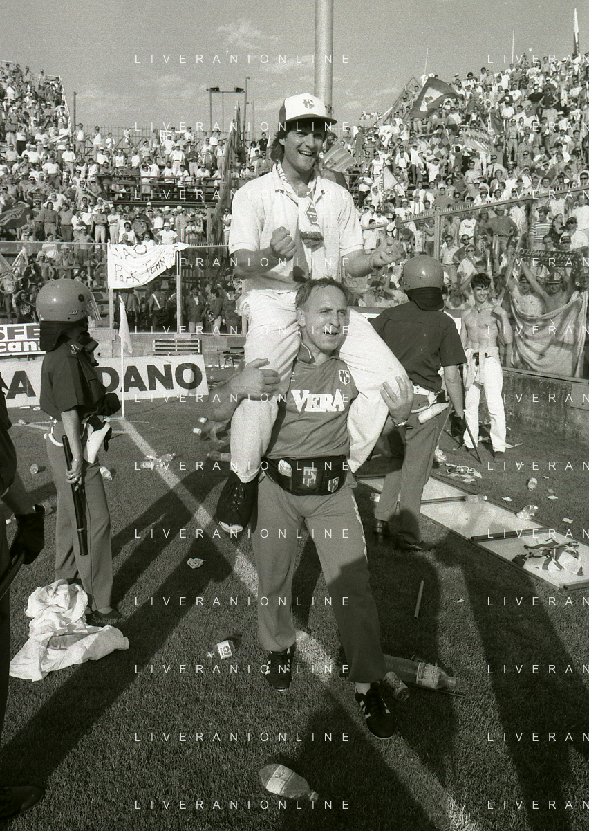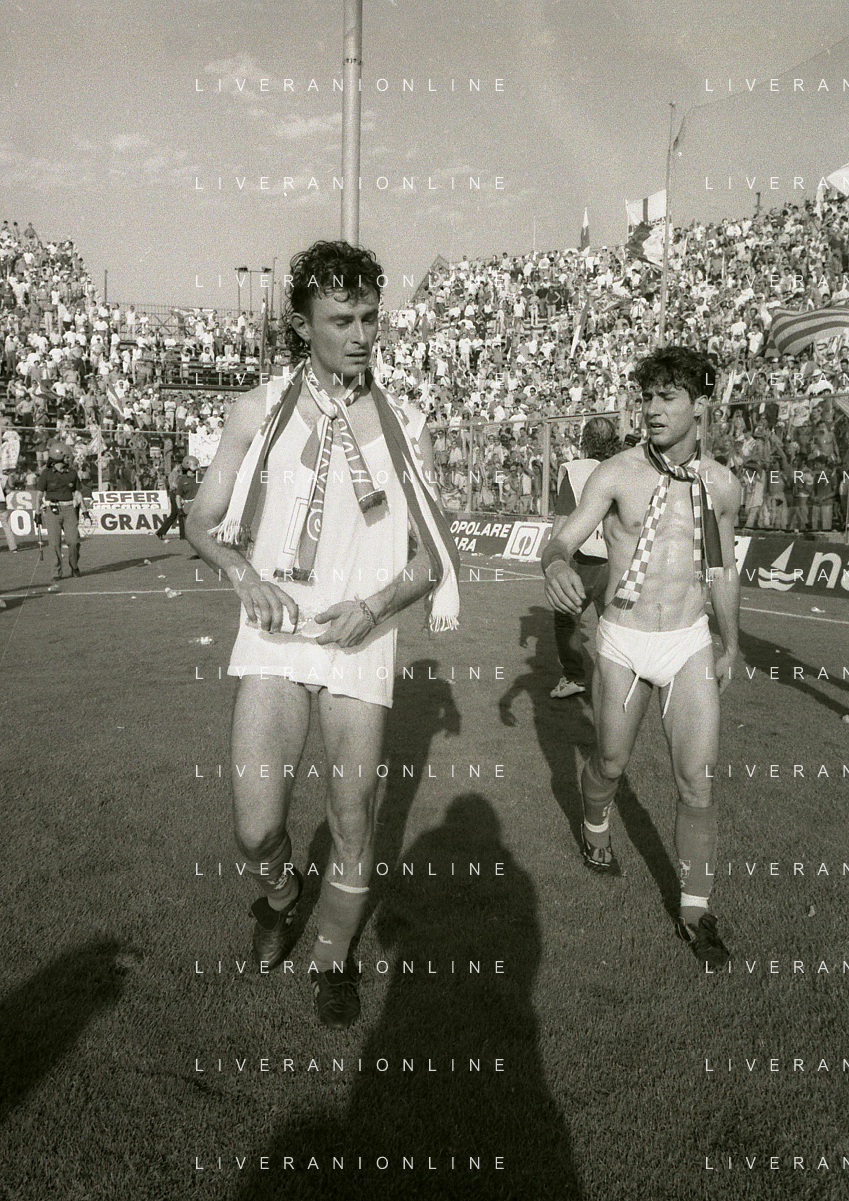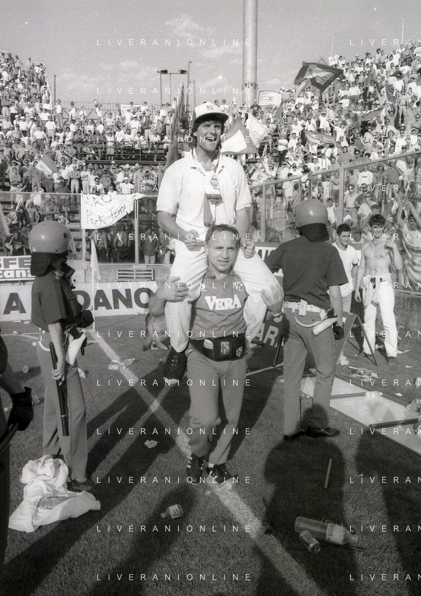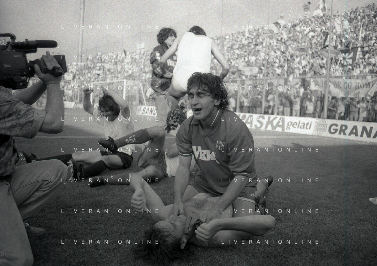 NEG- 15-06-1994 CREMONA SPAREGGIO PER LA PROMOZIONE IN SERIE A PADOVA-CESENA 2-1 NELLA FOTO GIUSEPPE GALDERISI A FINE GARA FESTEGGIA LA PROMOZIONE IN SERIE A AG ALDO LIVERANI SAS