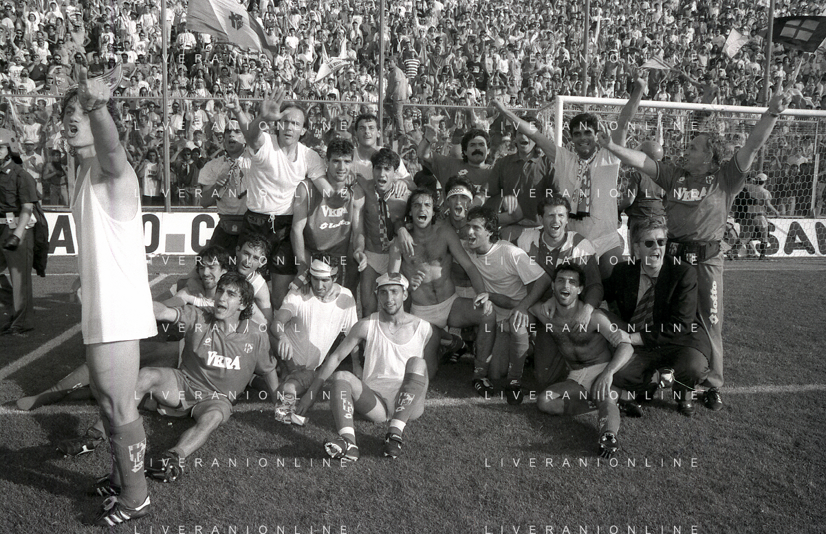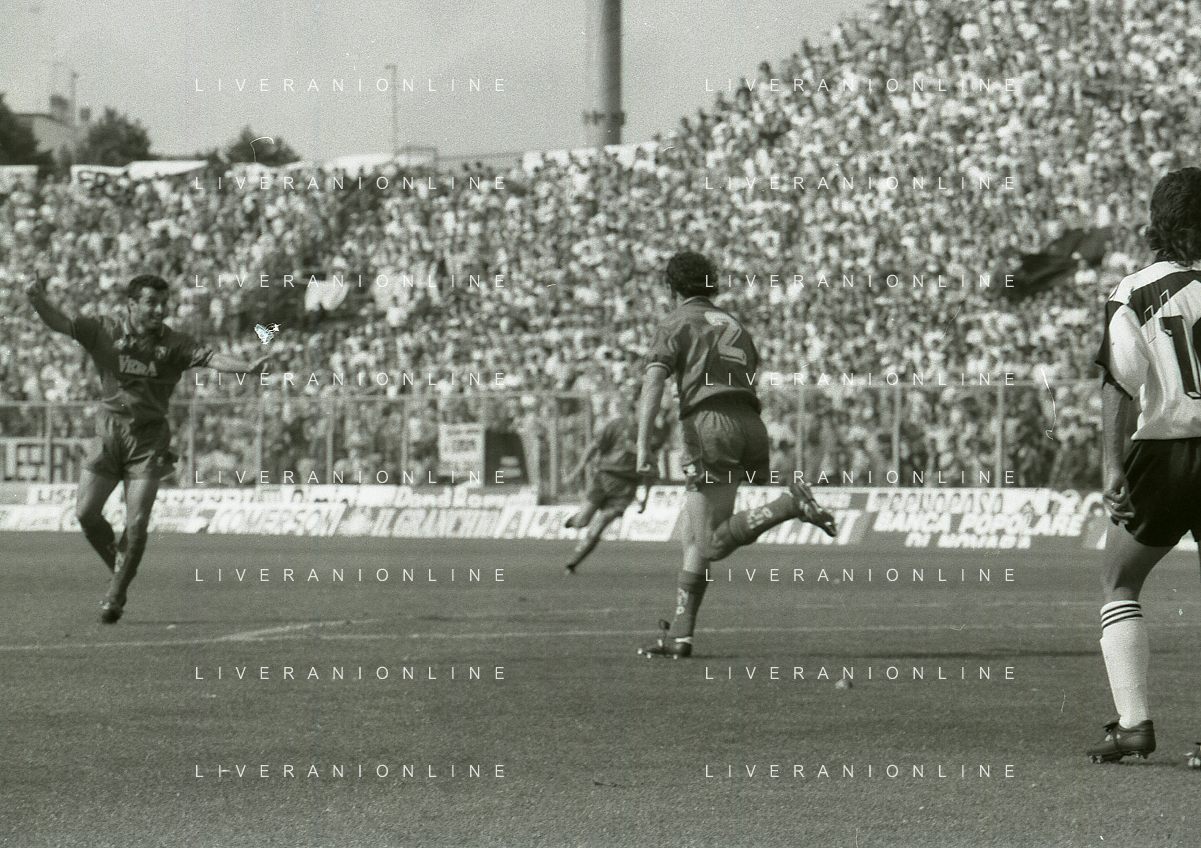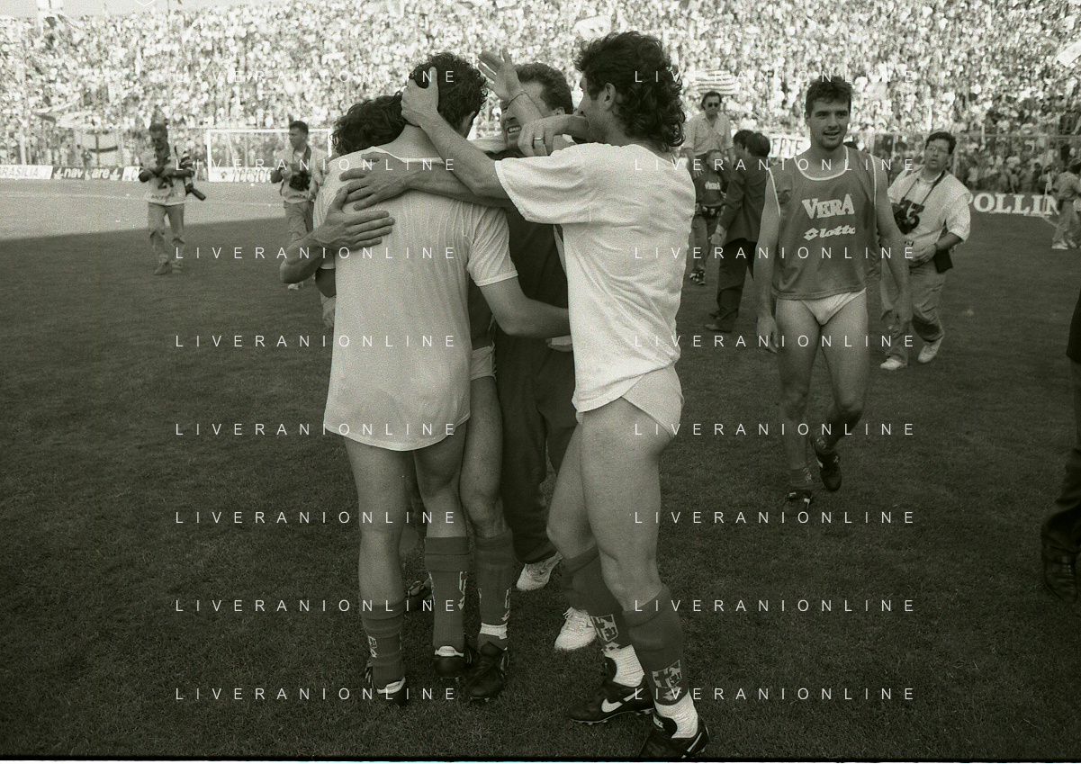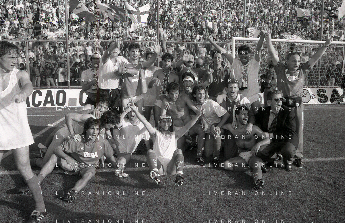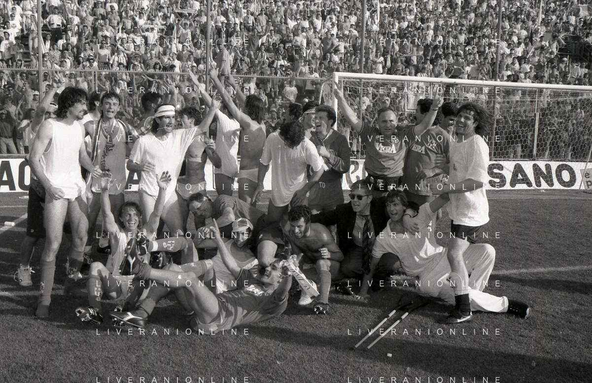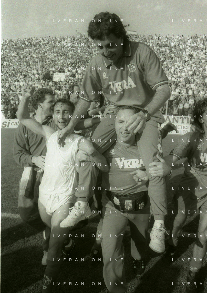 NEG- 15-06-1994 CREMONA SPAREGGIO PER LA PROMOZIONE IN SERIE A PADOVA-CESENA 2-1 NELLA FOTO GIUSEPPE GALDERISI A FINE GARA FESTEGGIA LA PROMOZIONE IN SERIE A AG ALDO LIVERANI SAS