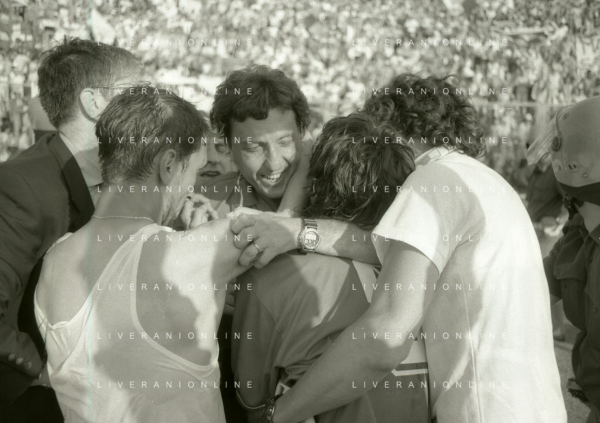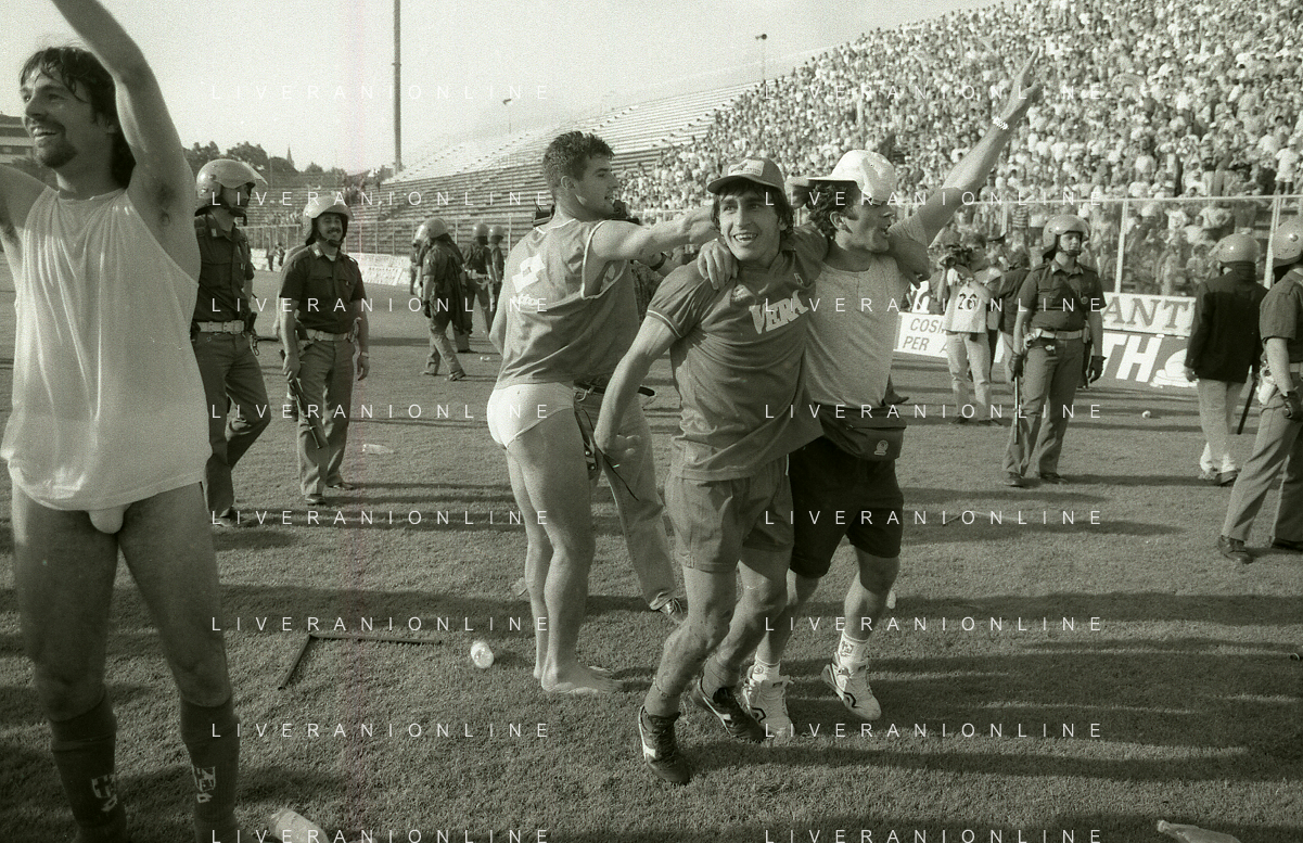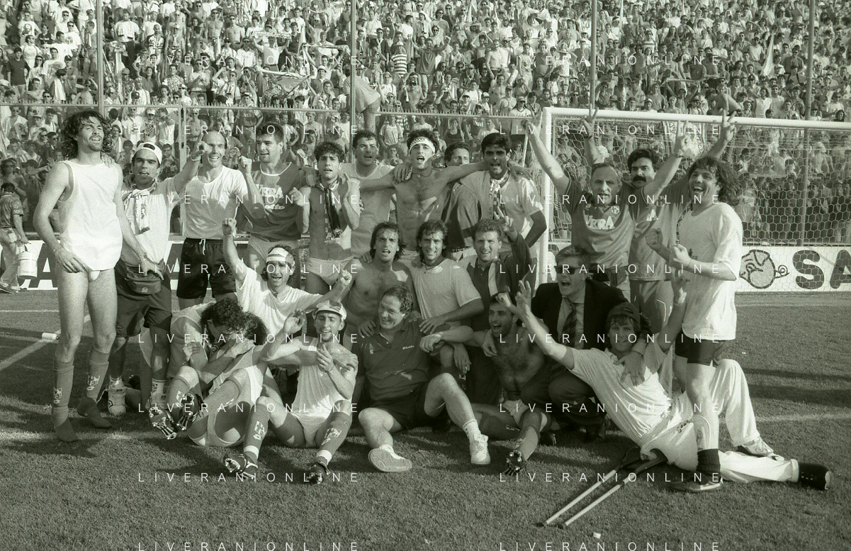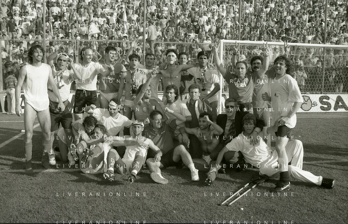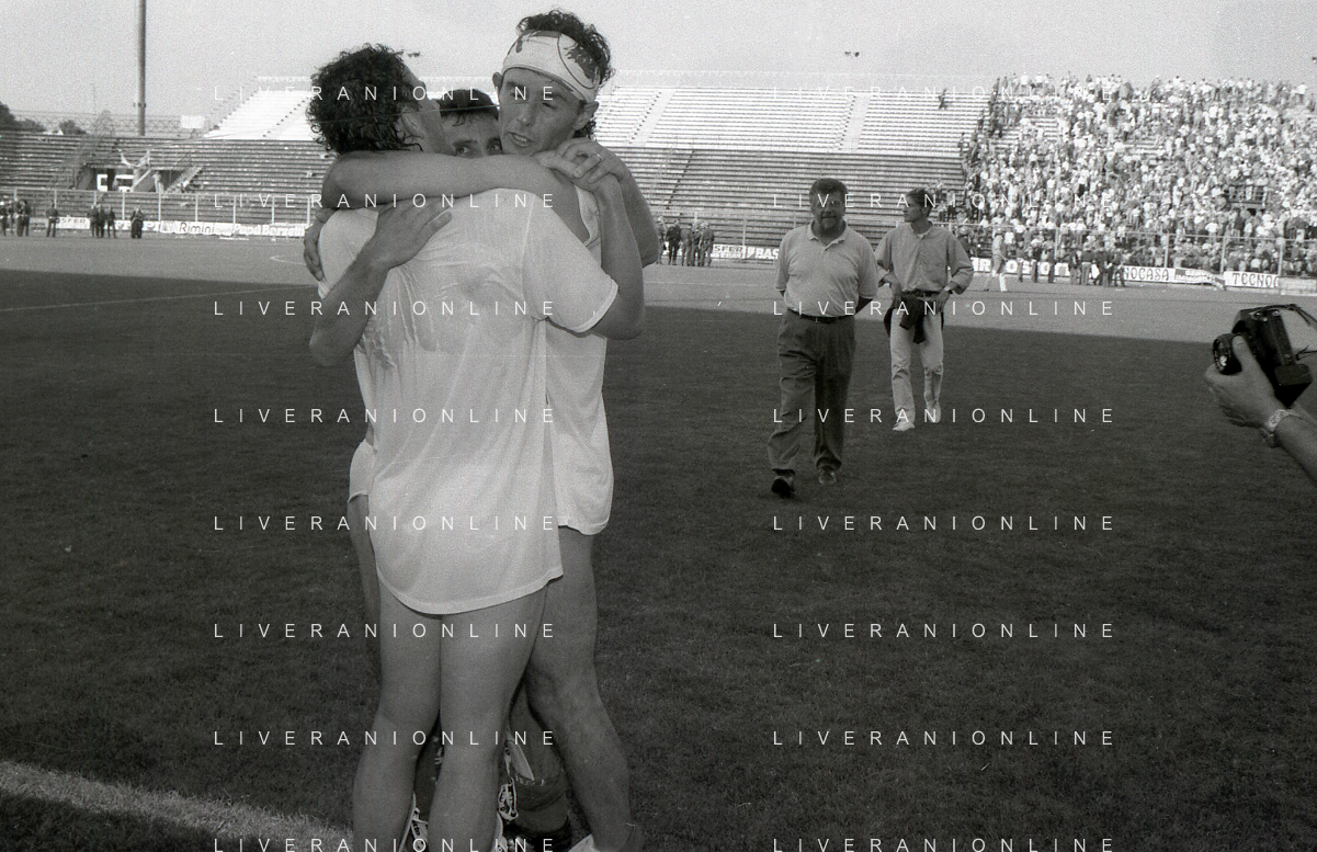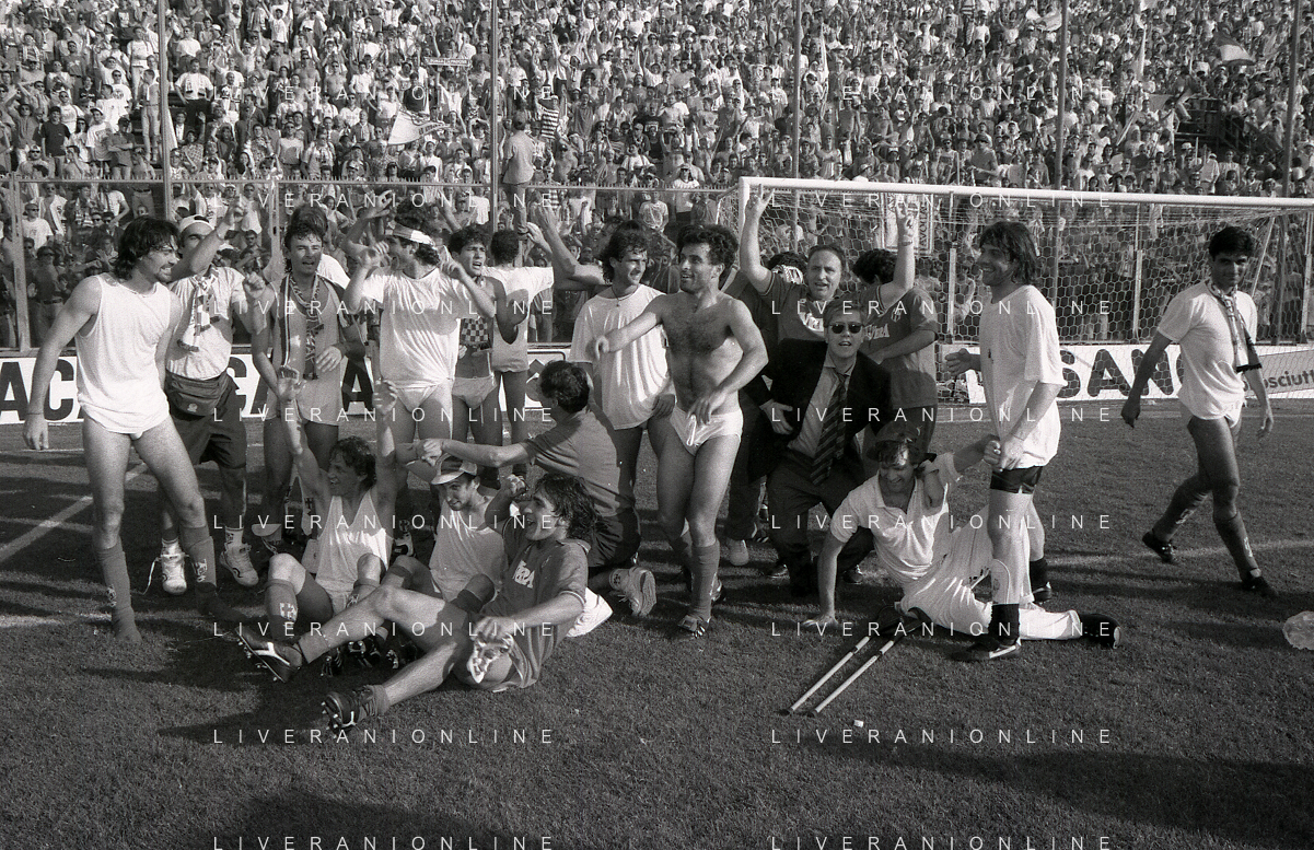 NEG- 15-06-1994 CREMONA SPAREGGIO PER LA PROMOZIONE IN SERIE A PADOVA-CESENA 2-1 NELLA FOTO GIUSEPPE GALDERISI A FINE GARA FESTEGGIA LA PROMOZIONE IN SERIE A AG ALDO LIVERANI SAS