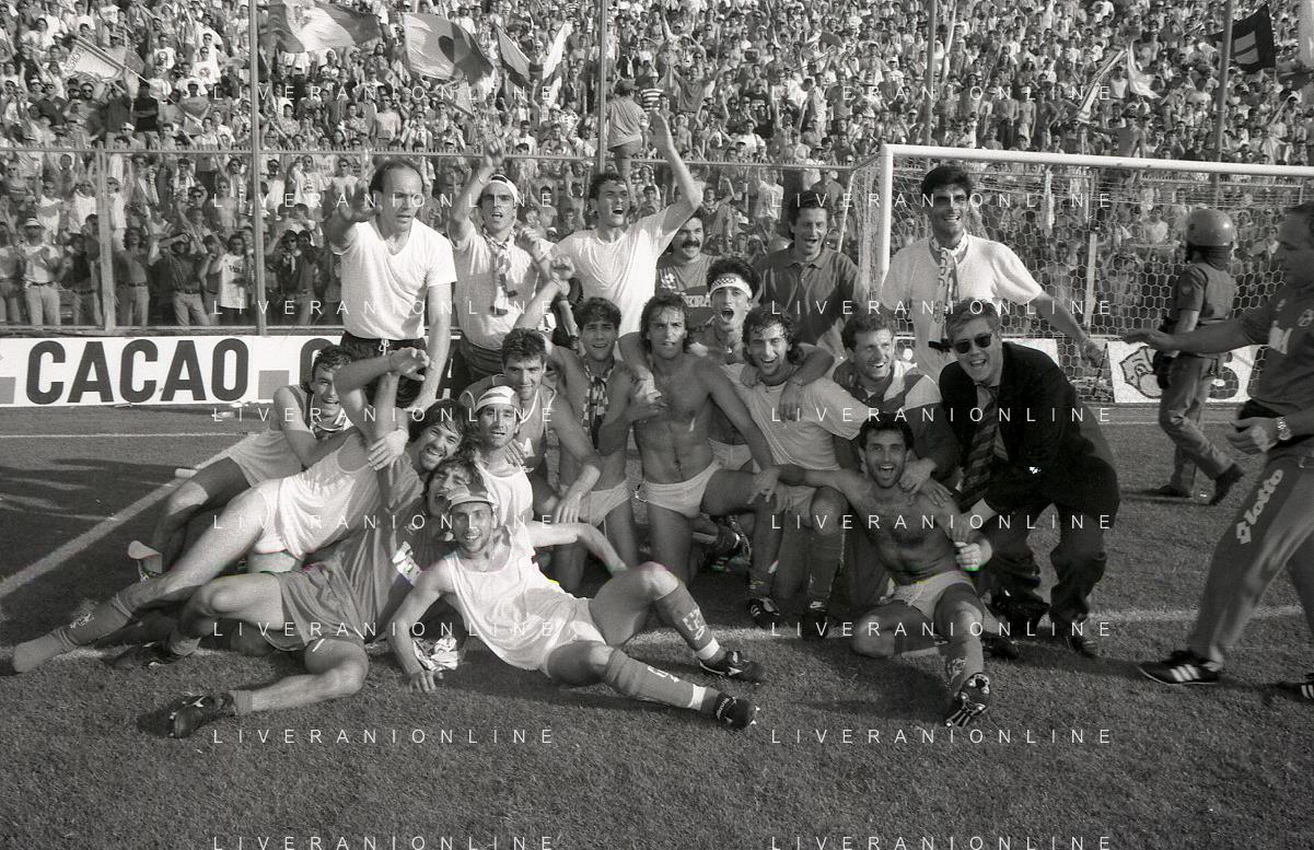NEG- 15-06-1994 CREMONA SPAREGGIO PER LA PROMOZIONE IN SERIE A PADOVA-CESENA 2-1 NELLA FOTO I GIOCATORI DEL PADOVA CALCIO FESTEGGIANO LA PROMOZIONE IN SERIE A AG ALDO LIVERANI SAS