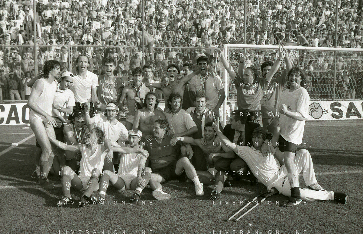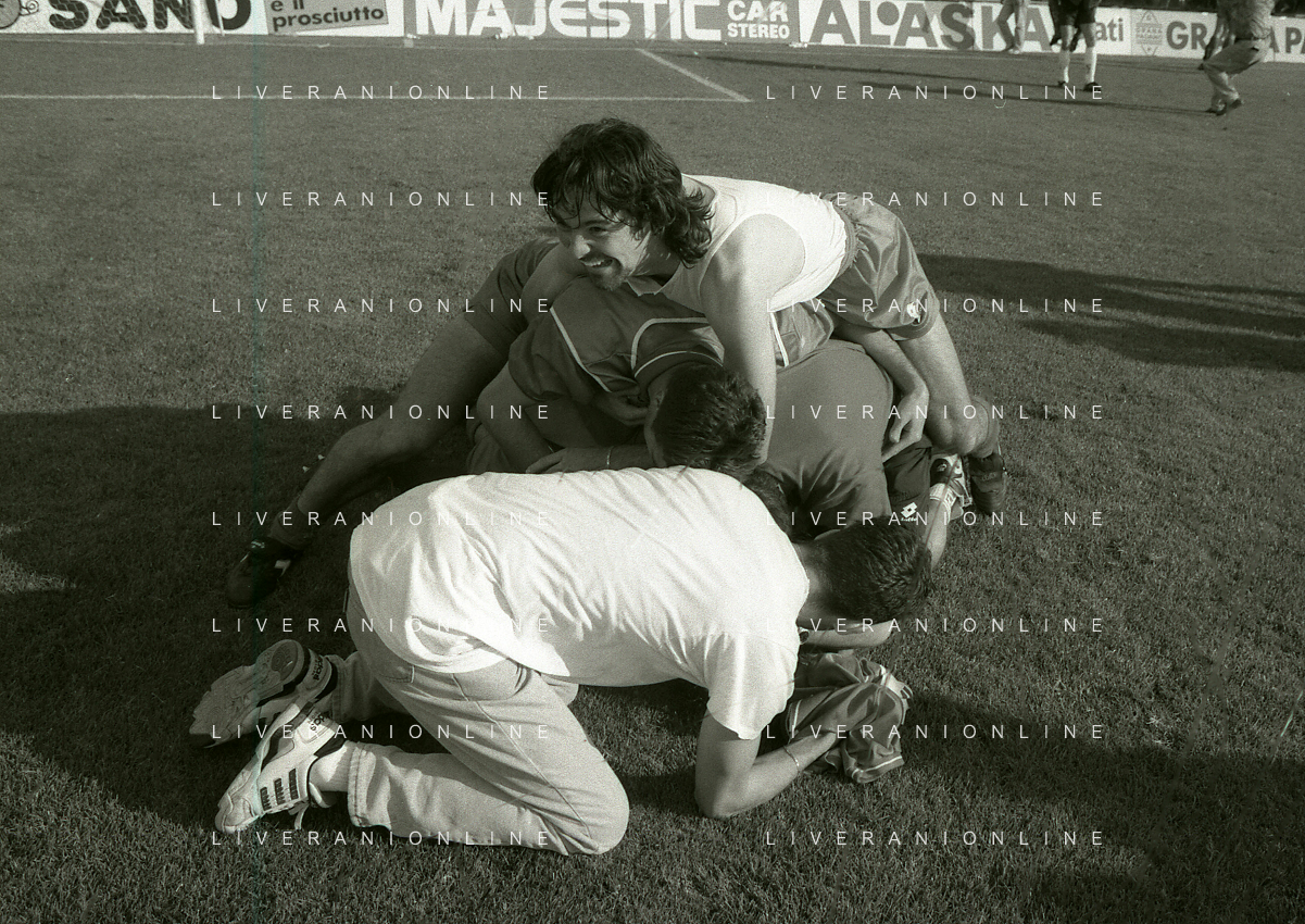 NEG- 15-06-1994 CREMONA SPAREGGIO PER LA PROMOZIONE IN SERIE A PADOVA-CESENA 2-1 NELLA FOTO ESULTANZA GIOCATORI PADOVA PER LA PROMOZIONE IN SERIE A AG ALDO LIVERANI SAS