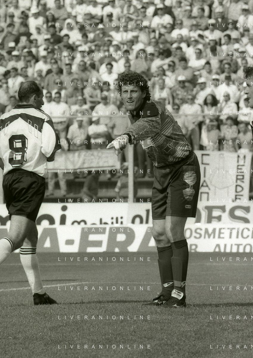 NEG- 15-06-1994 CREMONA SPAREGGIO PER LA PROMOZIONE IN SERIE A PADOVA-CESENA 2-1 NELLA FOTO MAURO SANDREANI A FINE GARA FESTEGGIA LA PROMOZIONE IN SERIE A CON IL PADOVA CALCIO AG ALDO LIVERANI SAS