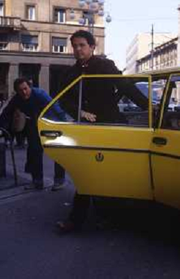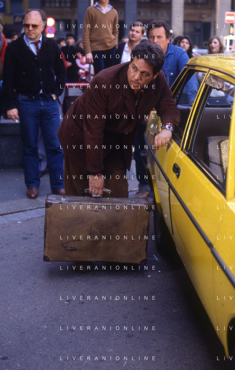 Dia- RETROSPETTIVA RENATO POZZETTO ATTORE NELLA FOTO SUL SET DEL FILM “IL RAGAZZO DI CAMPAGNA“ A MILANO NELL'ANNO 1984 diretto da Castellano e Pipolo AG ALDO LIVERANI SAS