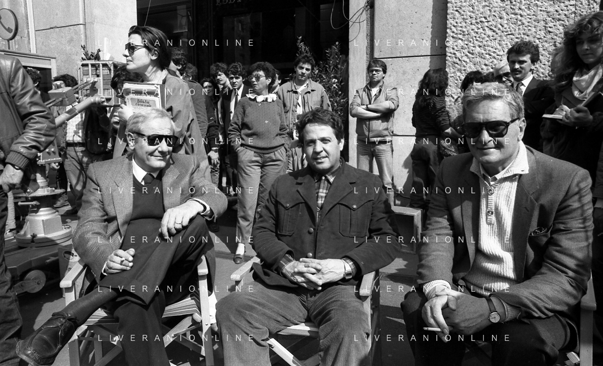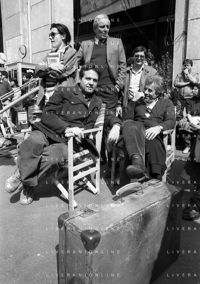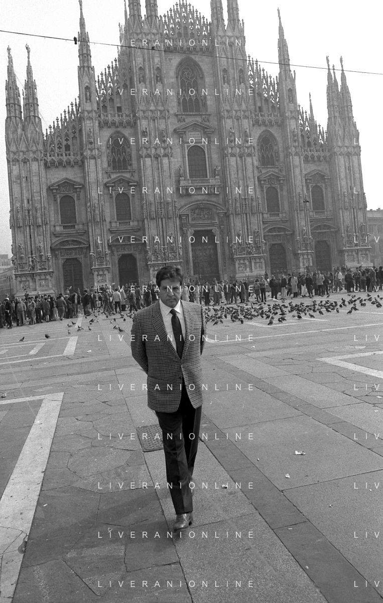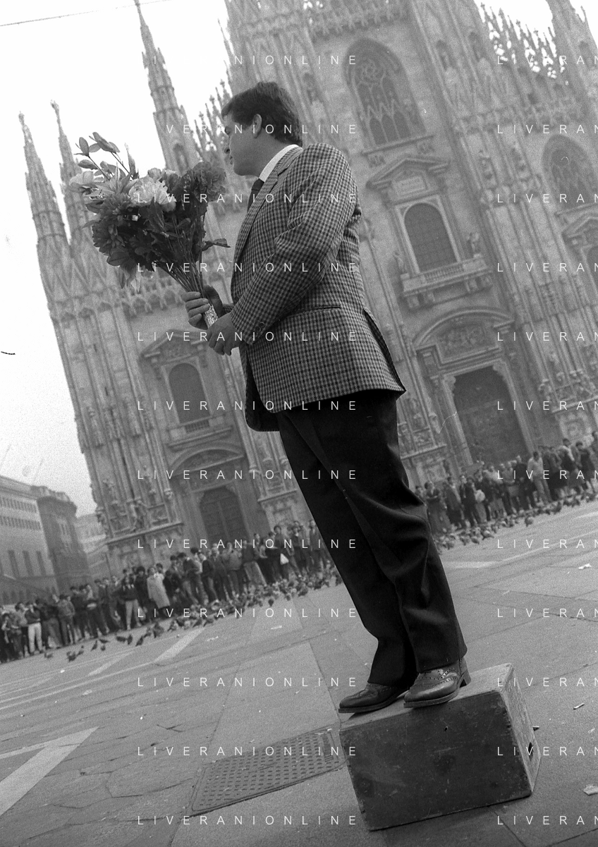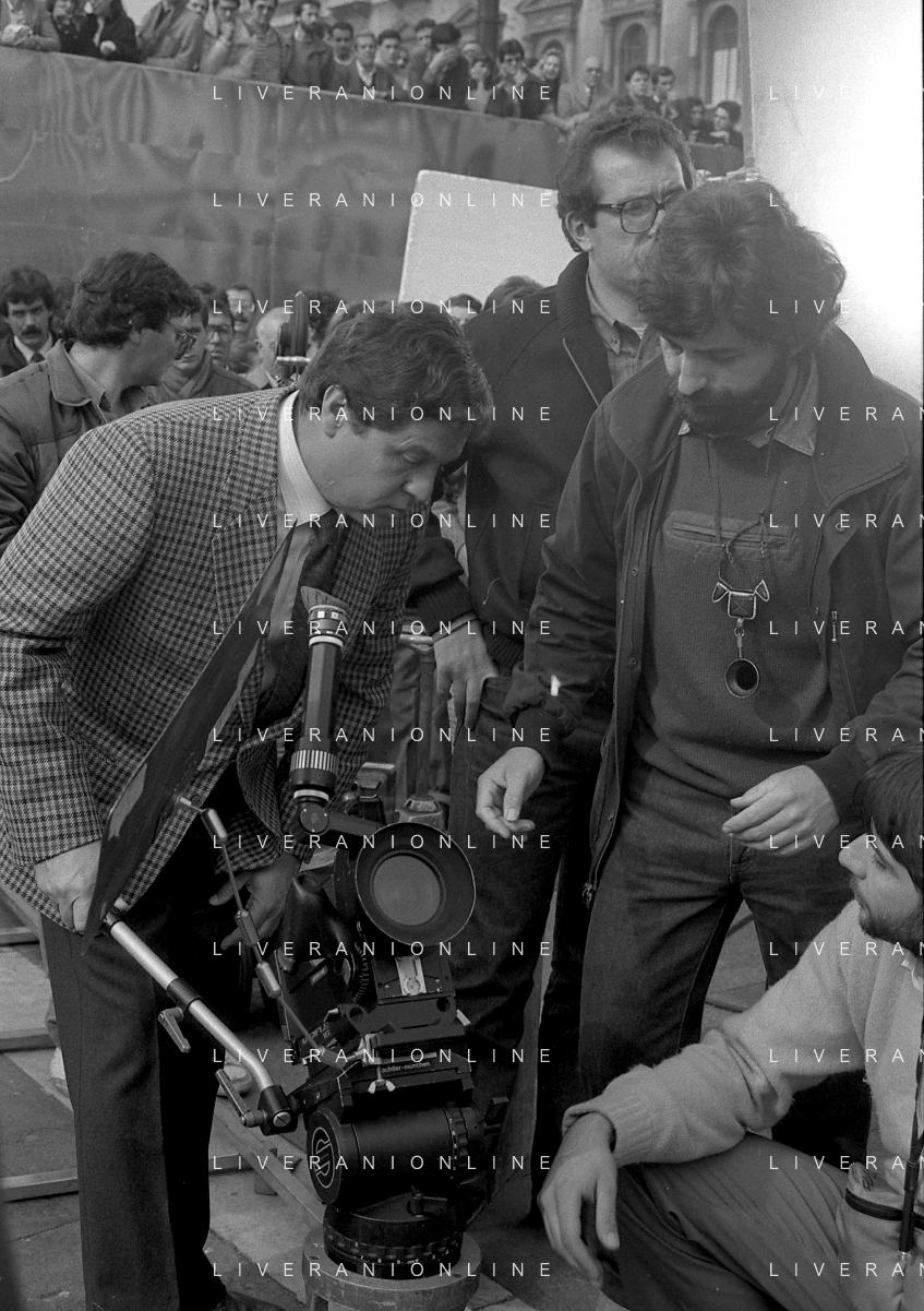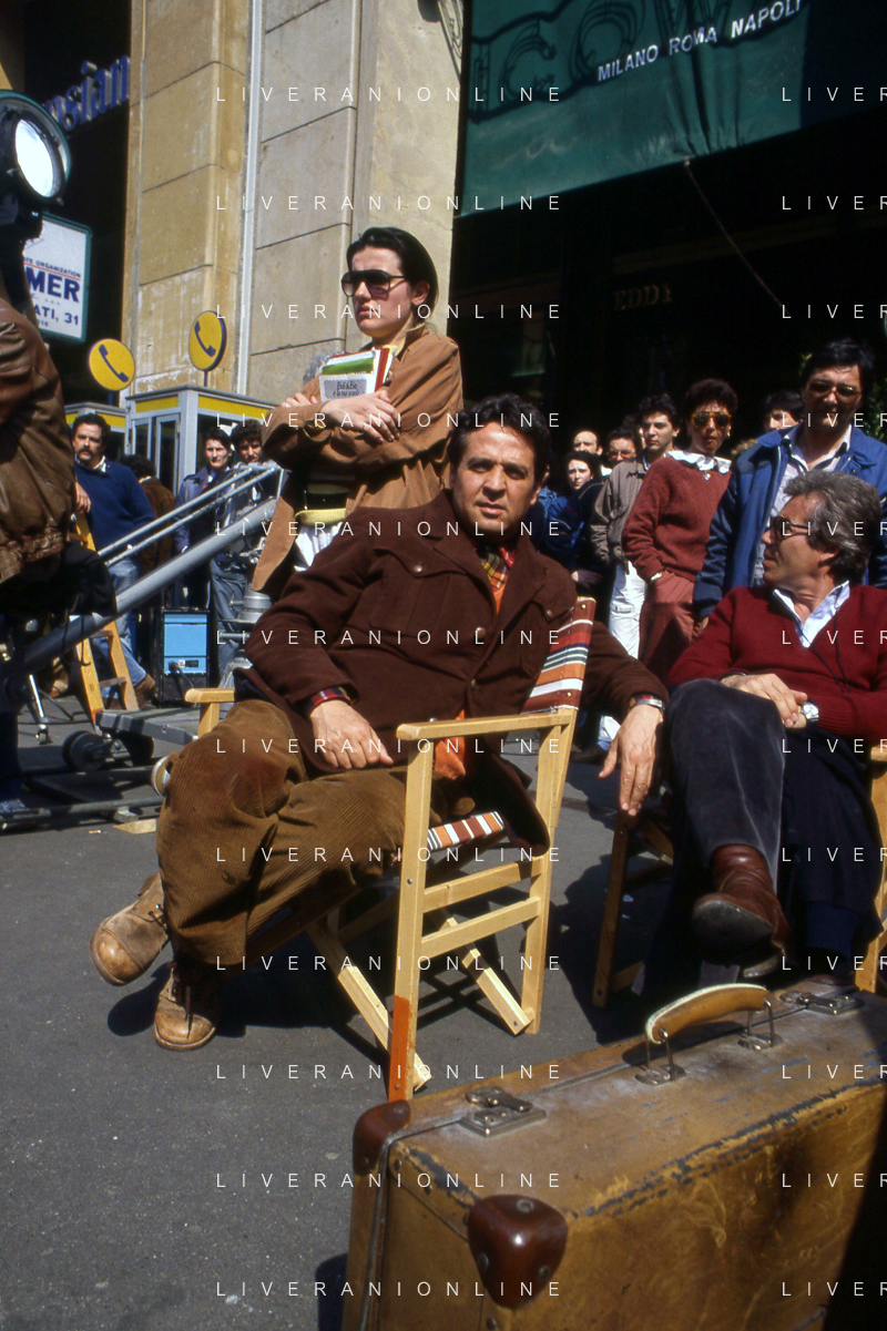 Neg- RETROSPETTIVA RENATO POZZETTO ATTORE NELLA FOTO SUL SET DEL FILM “IL RAGAZZO DI CAMPAGNA“ IN PIAZZA DUOMO A MILANO NELL'ANNO 1984 AG ALDO LIVERANI SAS