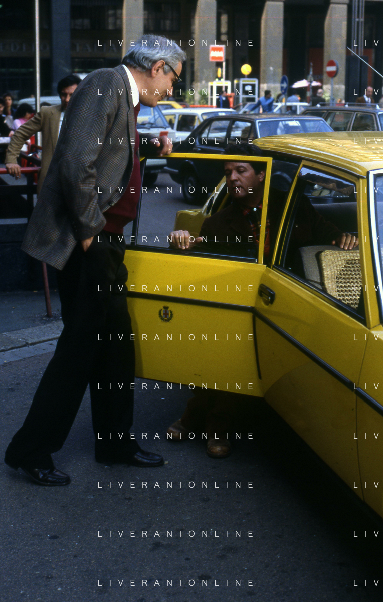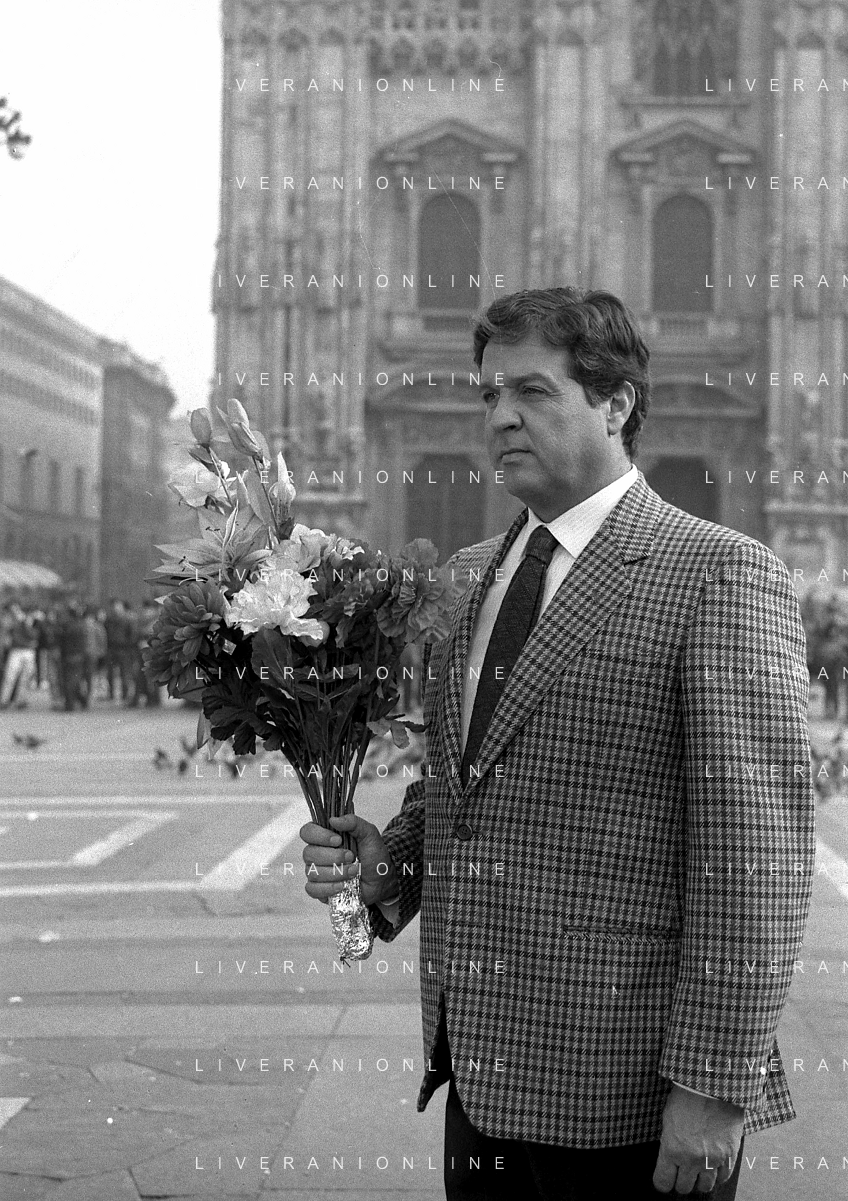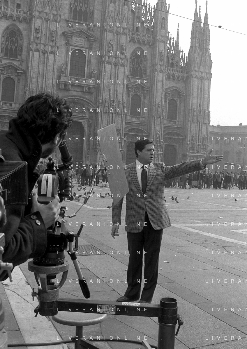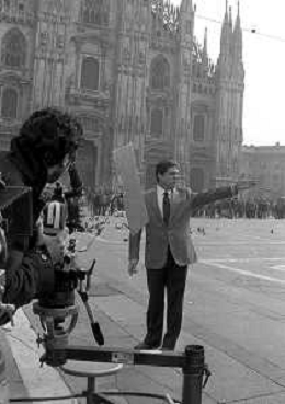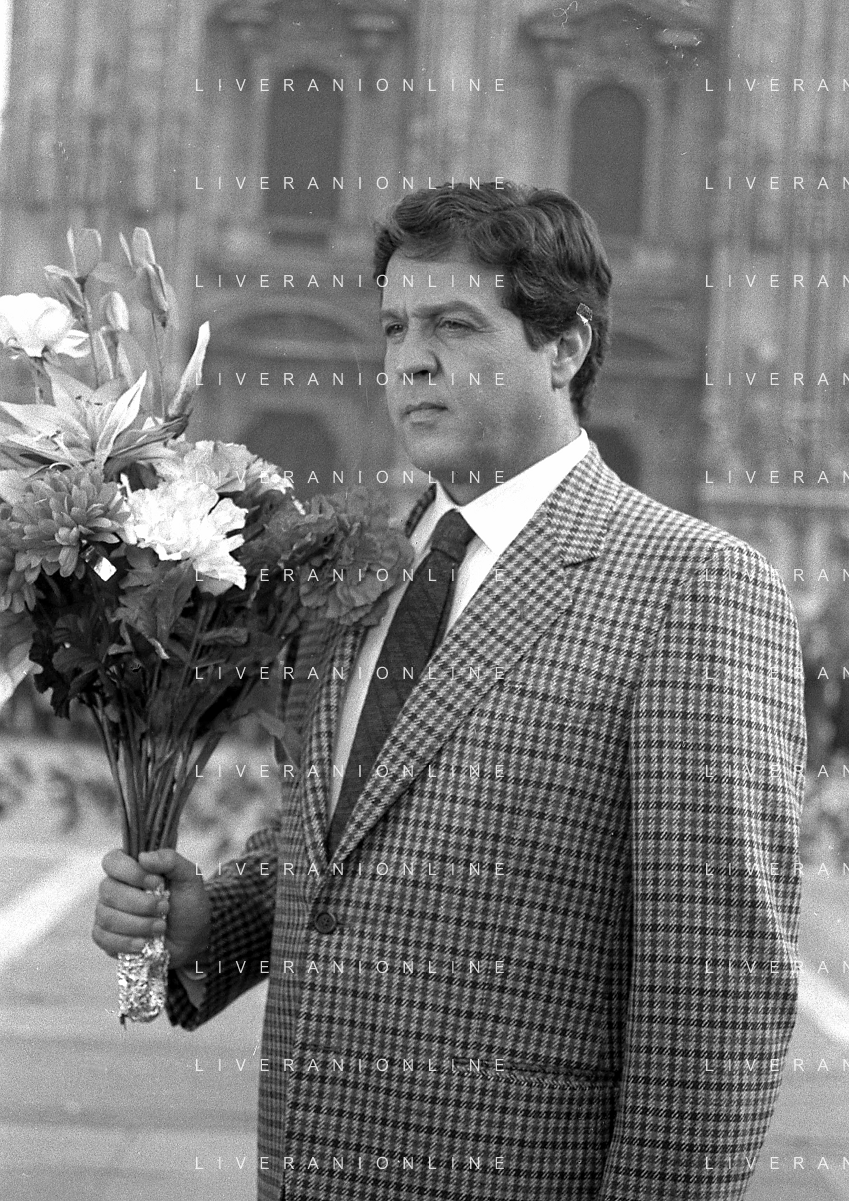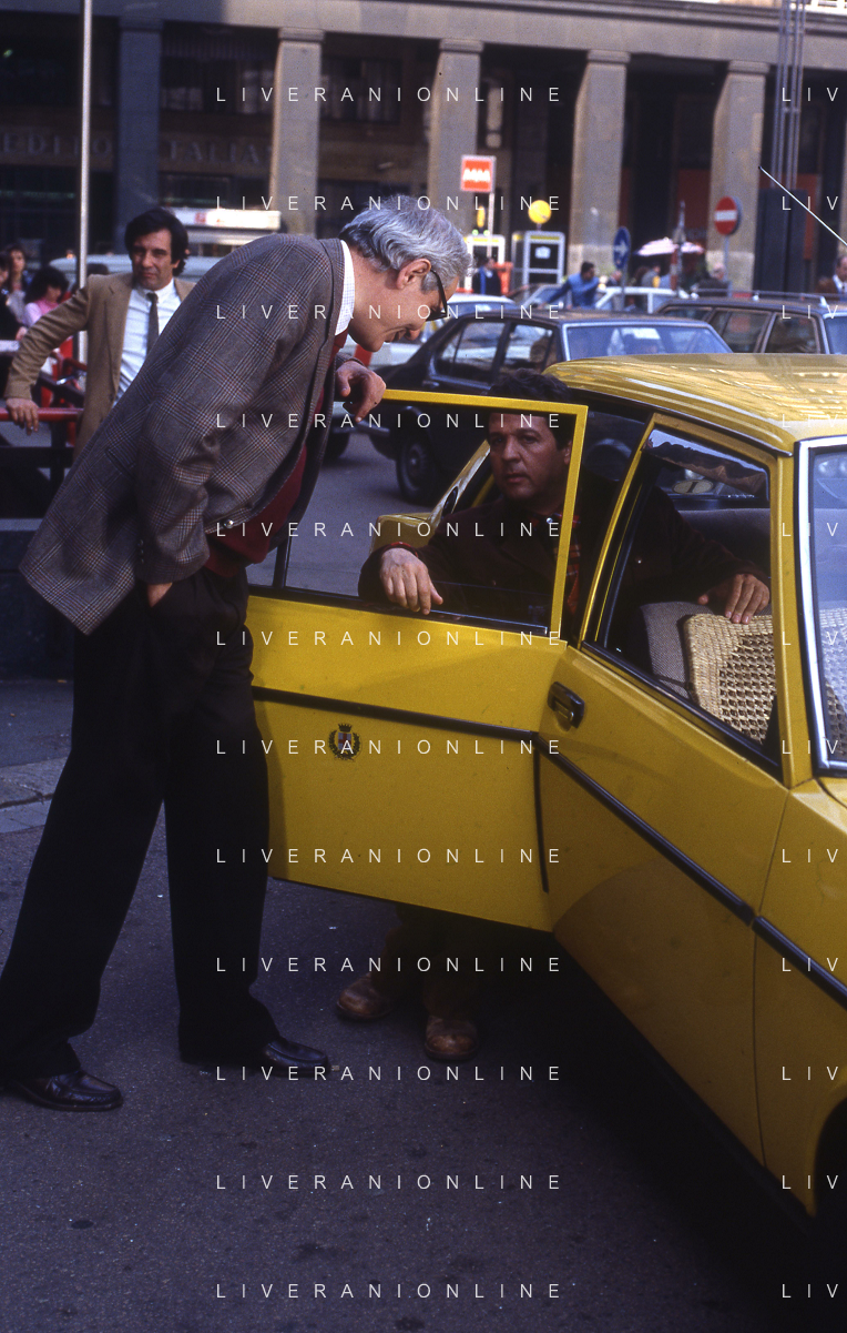Neg- RETROSPETTIVA RENATO POZZETTO ATTORE NELLA FOTO SUL SET DEL FILM “IL RAGAZZO DI CAMPAGNA“ IN PIAZZA DUOMO A MILANO NELL'ANNO 1984 AG ALDO LIVERANI SAS