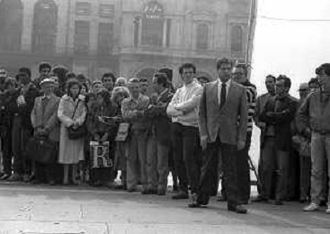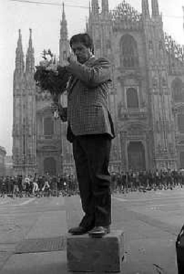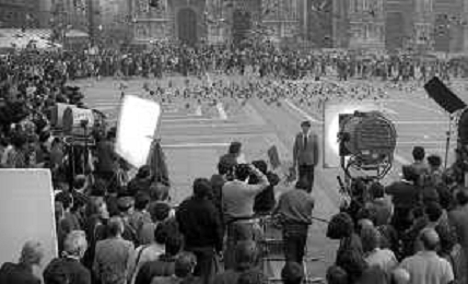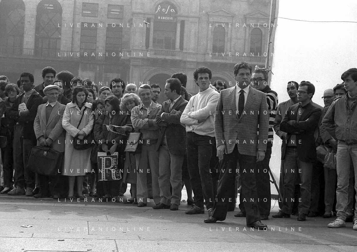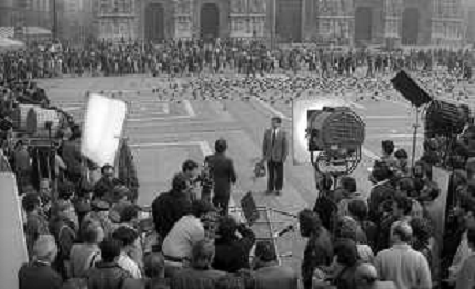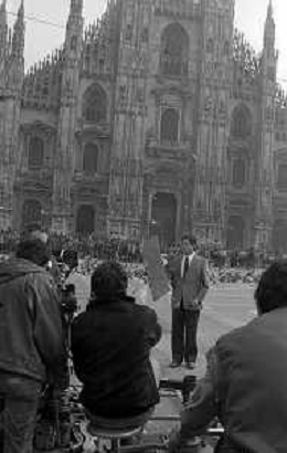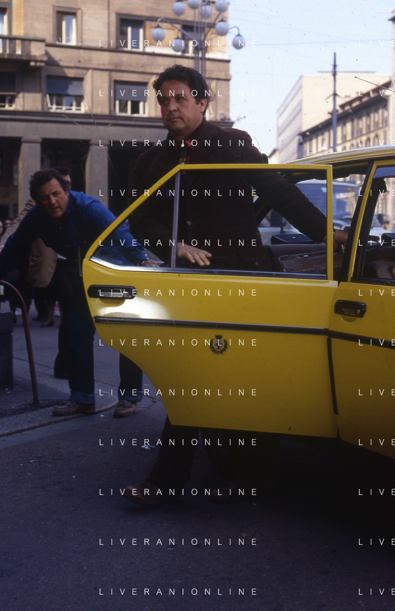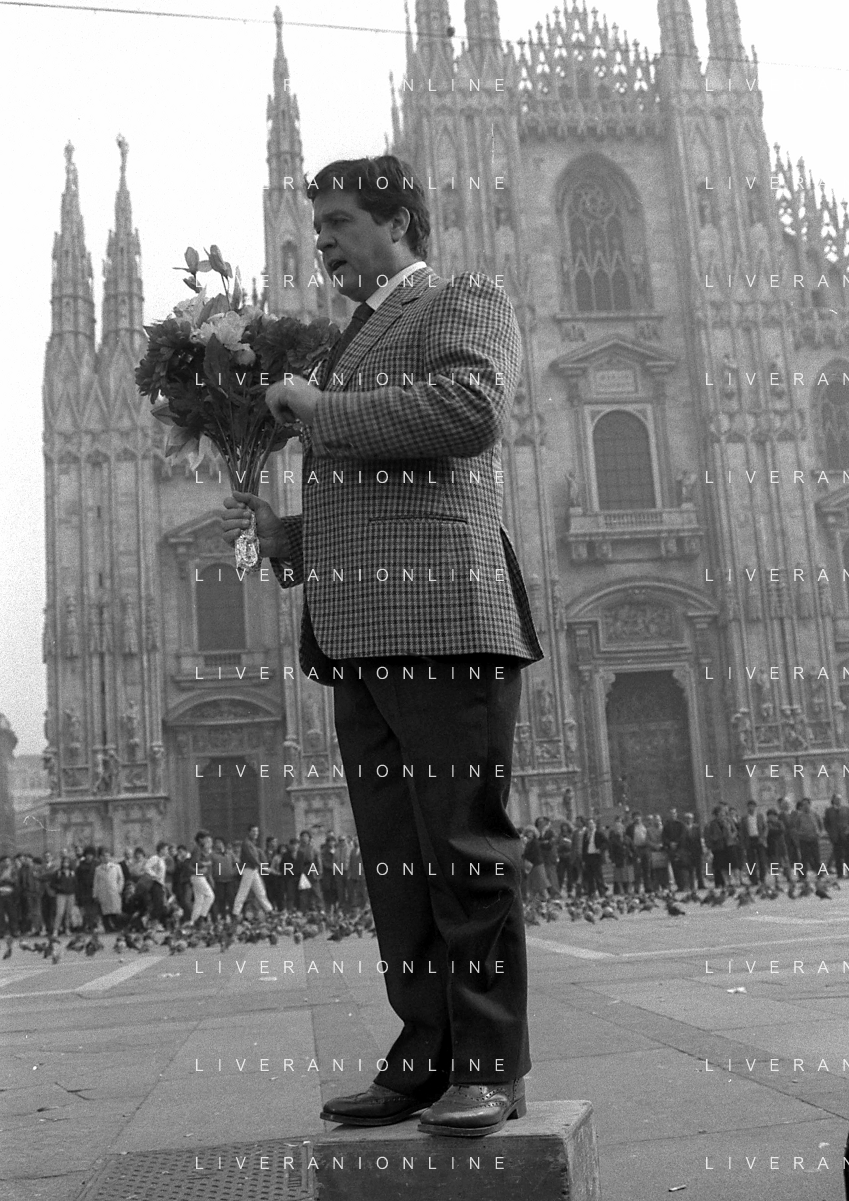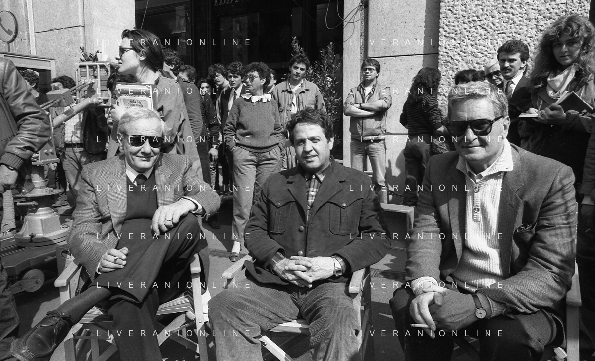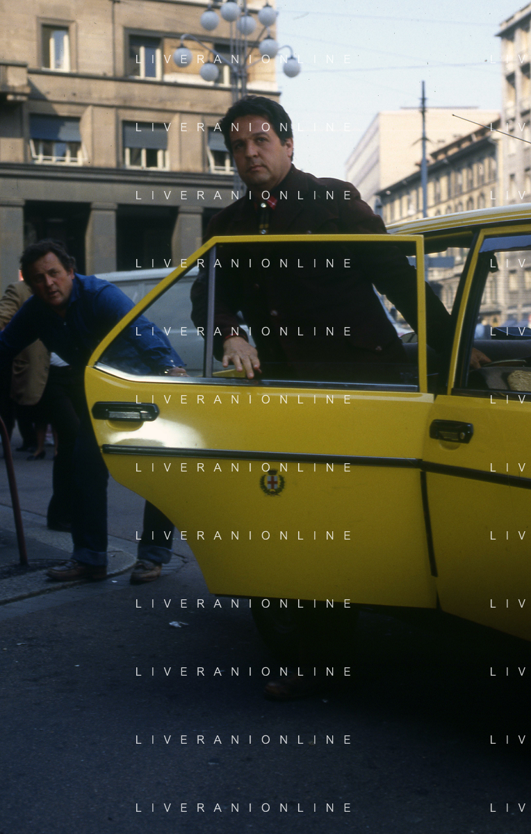 Neg- RETROSPETTIVA RENATO POZZETTO ATTORE NELLA FOTO SUL SET DEL FILM “IL RAGAZZO DI CAMPAGNA“ IN PIAZZA DUOMO A MILANO NELL'ANNO 1984 AG ALDO LIVERANI SAS