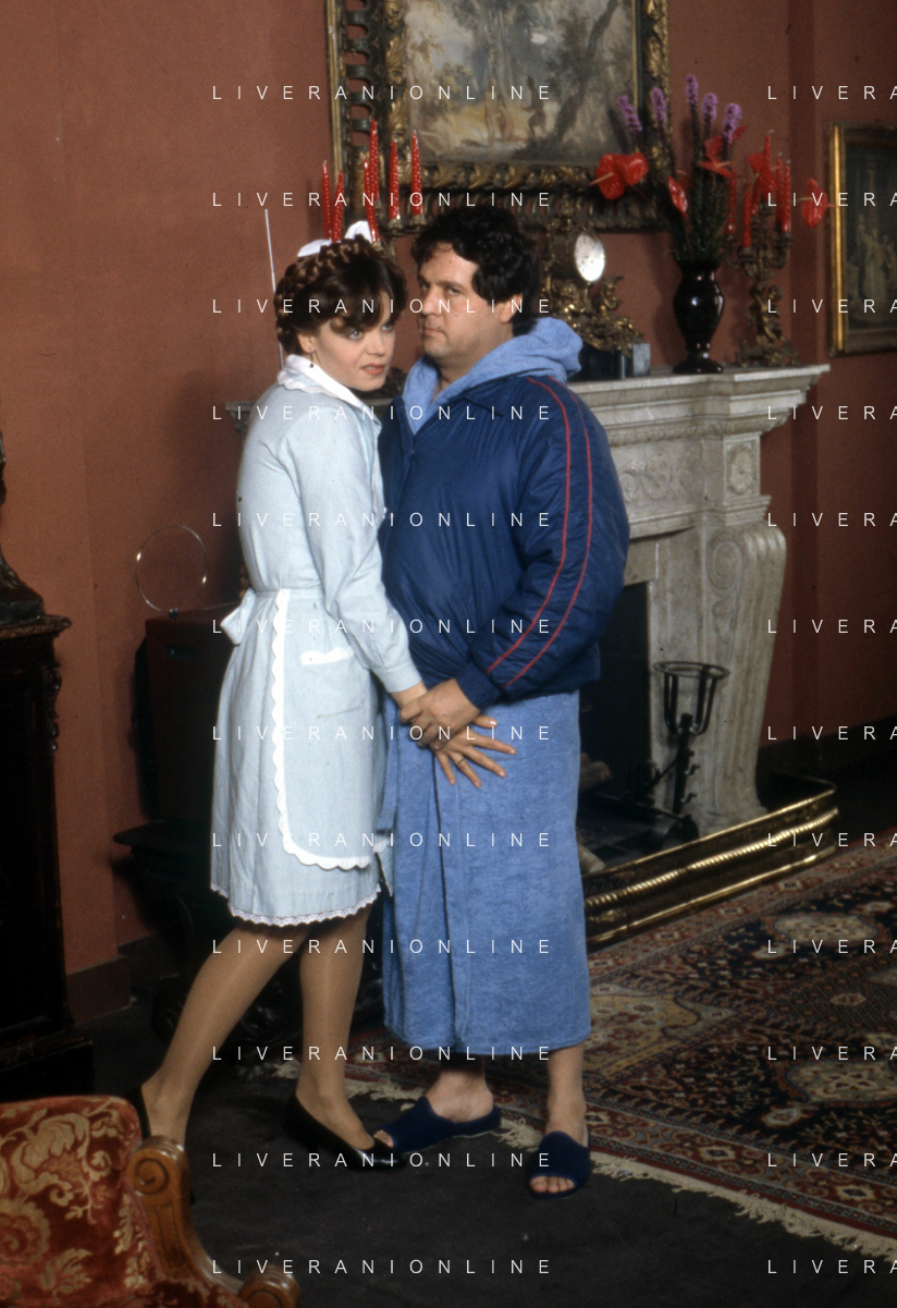 Dia- RETROSPETTIVA RENATO POZZETTO ATTORE NELLA FOTO CON MARILDA DONA' NEL FILM “LA CASA STREGATA“ DIRETTO DA BRUNO CORBUCCI NELL'ANNO 1982 AG ALDO LIVERANI SAS