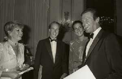 NEG-RETROSPETTIVA PRINCIPE ALBERTO DI MONACO NELLA FOTO IL PRINCIPE ALBERTO DI MONACO A VENEZIA NELL'ANNO 1983 CON ROGER MOORE AG ALDO LIVERANI SAS