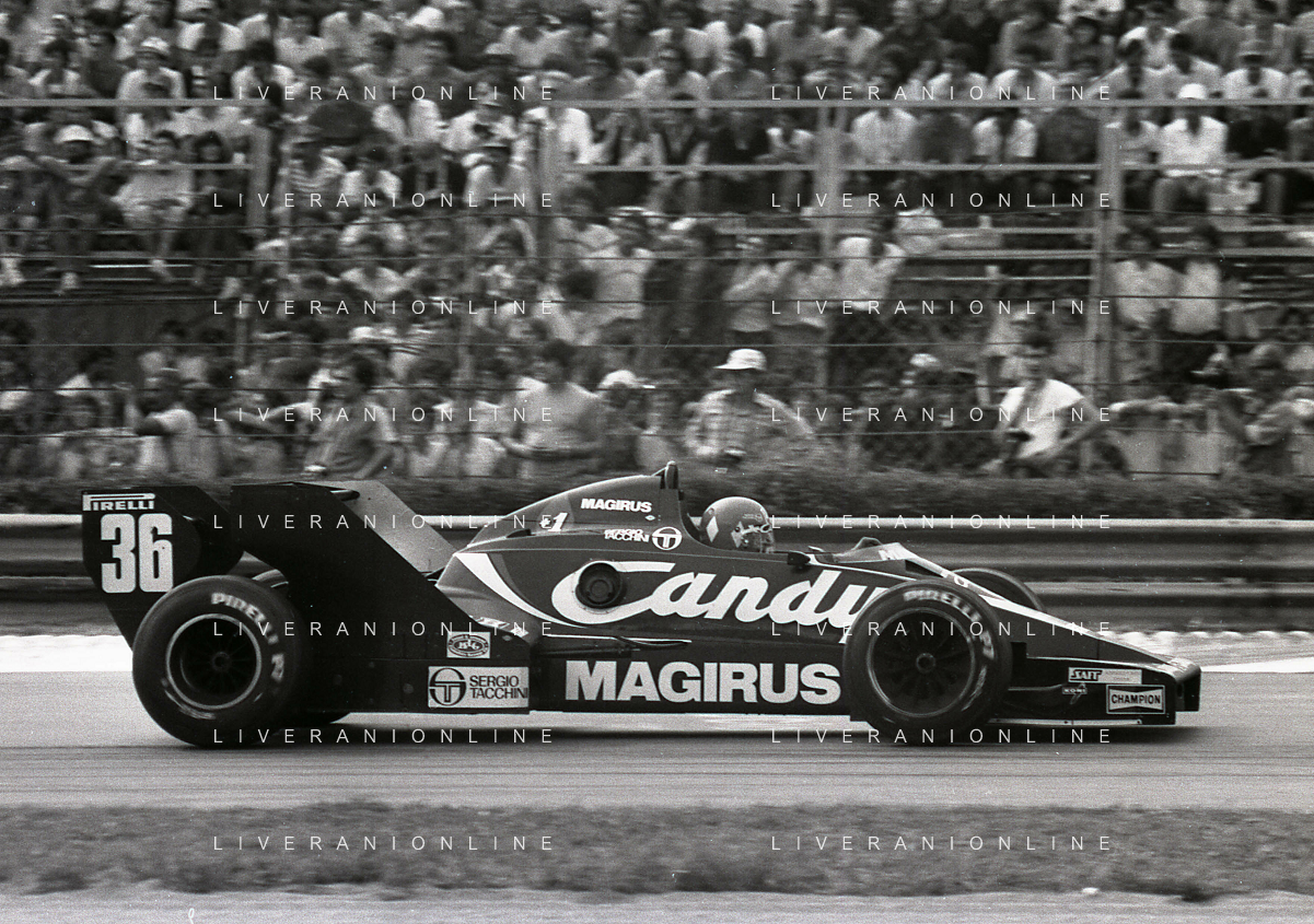 NEG- 11-09-1983 MONZA GRAN PREMIO D'ITALIA F1 NELLA FOTO ANDREA DE CESARIS AG ALDO LIVERANI SAS