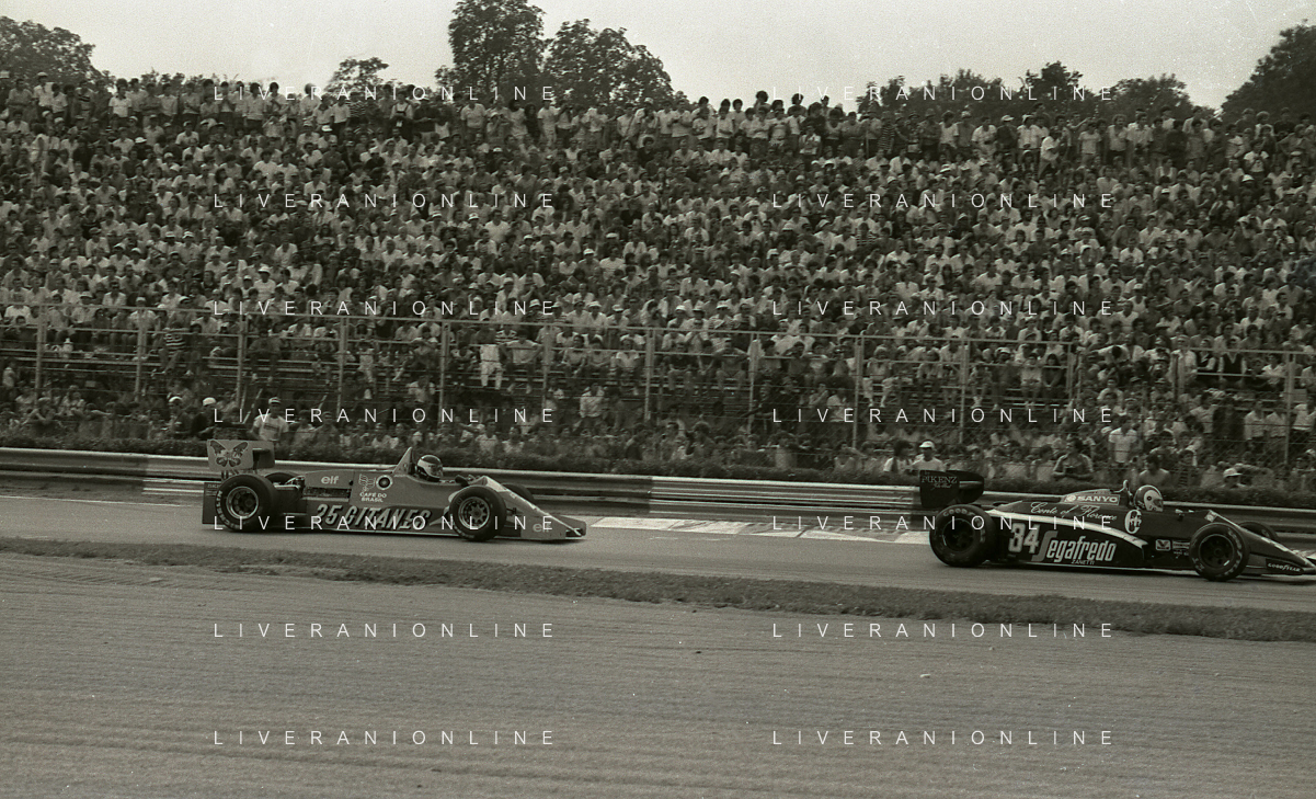 NEG- 11-09-1983 MONZA GRAN PREMIO D'ITALIA F1 NELLA FOTO Johnny Cecotto 34-Jean-Pierre Jarier 25 AG ALDO LIVERANI SAS