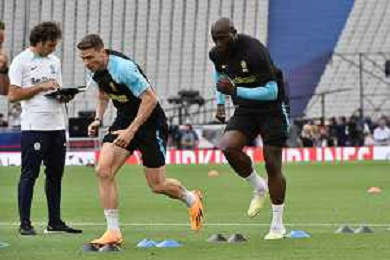 TVRG Allenamento Inter finale Champions nella foto da SX Marcelo Brozovic (Inter) Lautaro Martinez (Inter) e Romelu Lukaku (Inter) Istanbul (TUR) 09-06-2023 Allenamento dell'Inter in preparazione della finale di UEFA Champions Lerague contro il Manchester City foto Roberto Garavaglia/ag. Aldo Liverani sas