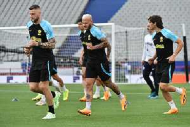 TVRG Allenamento Inter finale Champions nella foto da SX Milan Skriniar (Inter) Nicolo' Barella (Inter) e Marcelo Brozovic (Inter) Istanbul (TUR) 09-06-2023 Allenamento dell'Inter in preparazione della finale di UEFA Champions Lerague contro il Manchester City foto Roberto Garavaglia/ag. Aldo Liverani sas