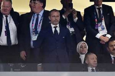 TVRG Aleksander Ceferin presidente UEFA e seduto sulla DX Recep Tayyip Erdogan presidente della Turchia Manchester City vs Inter Istanbul (TUR) 10-06-2023 Ataturk Olympic Stadium Finale UEFA Champions League foto Roberto Garavaglia/ag. Aldo Liverani sas