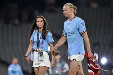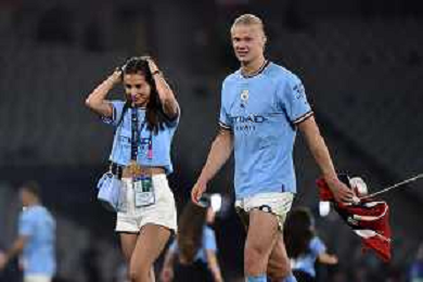 TVRG Erling Haaland (Manchester City) con la fidanzata Isabel Haugseng Johansen Manchester City vs Inter Istanbul (TUR) 10-06-2023 Ataturk Olympic Stadium Finale UEFA Champions League foto Roberto Garavaglia/ag. Aldo Liverani sas