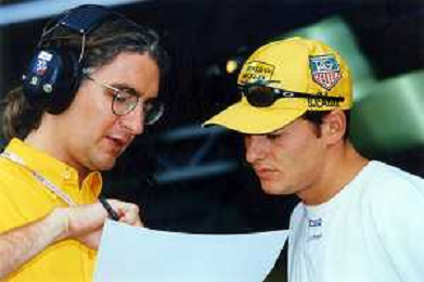 RETROSPETTIVA GIANCARLO FISICHELLA PILOTA F1 NELLA FOTO GIANCARLO FISICHELLA NELL'ANNO 1997 CON ROBERTO DA CREMA AG CONTROLUCE.-AG ALDO LIVERANI SAS