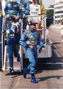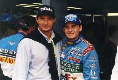 RETROSPETTIVA GIANCARLO FISICHELLA PILOTA F1 NELLA FOTO GIANCARLO FISICHELLA NELL'ANNO 1997 CON DANIELE MASSARO AG CONTROLUCE.-AG ALDO LIVERANI SAS