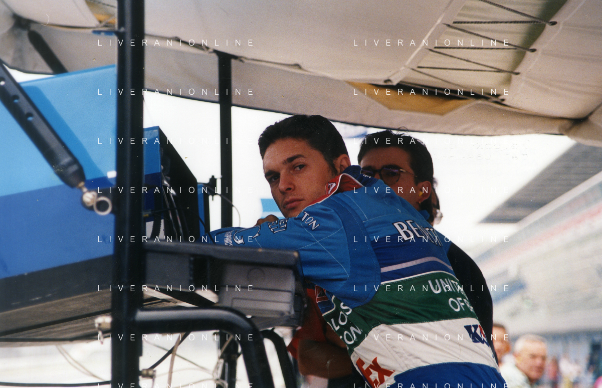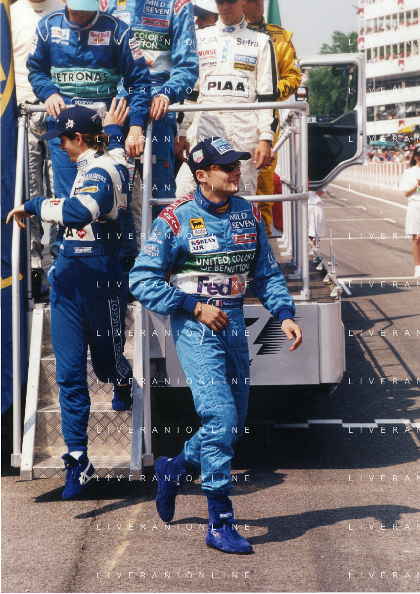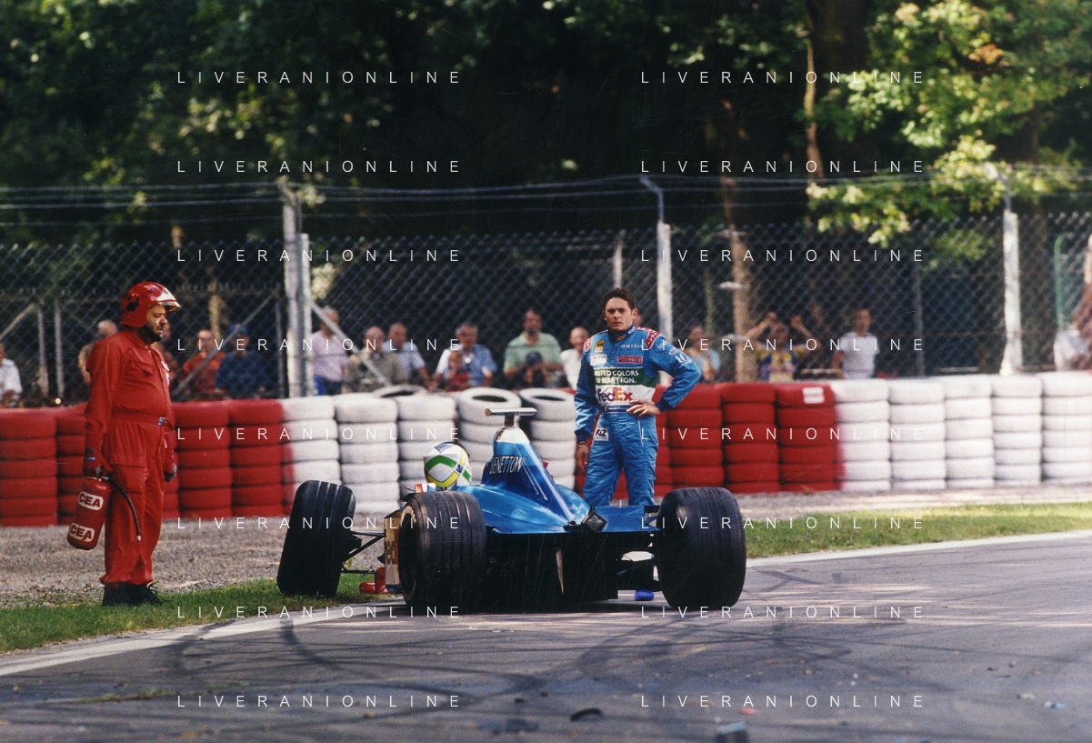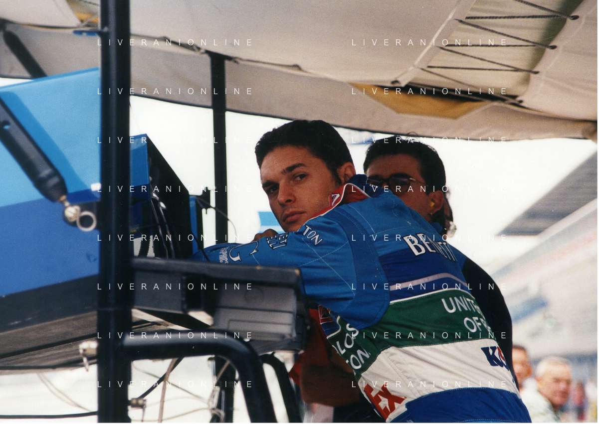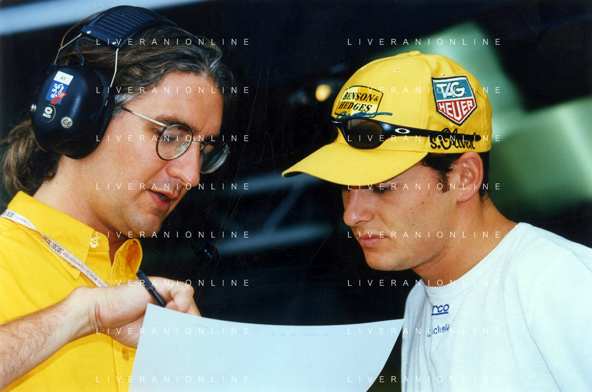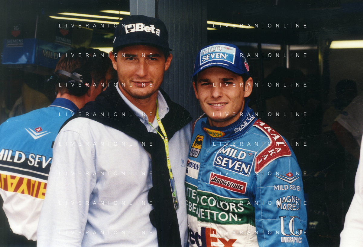 RETROSPETTIVA GIANCARLO FISICHELLA PILOTA F1 NELLA FOTO GIANCARLO FISICHELLA NELL'ANNO 1998 GP MONZA F1 CON DANIELE MASSARO AG CONTROLUCE.-AG ALDO LIVERANI SAS