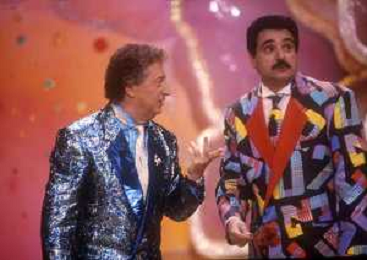 DIAP-RETROSPETTIVA SERGIO VASTANO ATTORE-COMICO NELLA FOTO SERGIO VASTANO NELL'ANNO 1989 NELLA TRASMISSIONE TELEVISIVA“TELEVIGGIU' “ CON ALESSANDRA CASELLA AG ALDO LIVERANI SAS