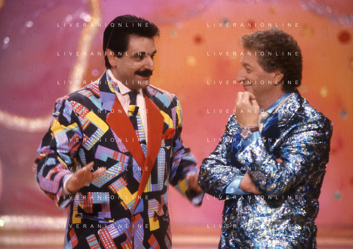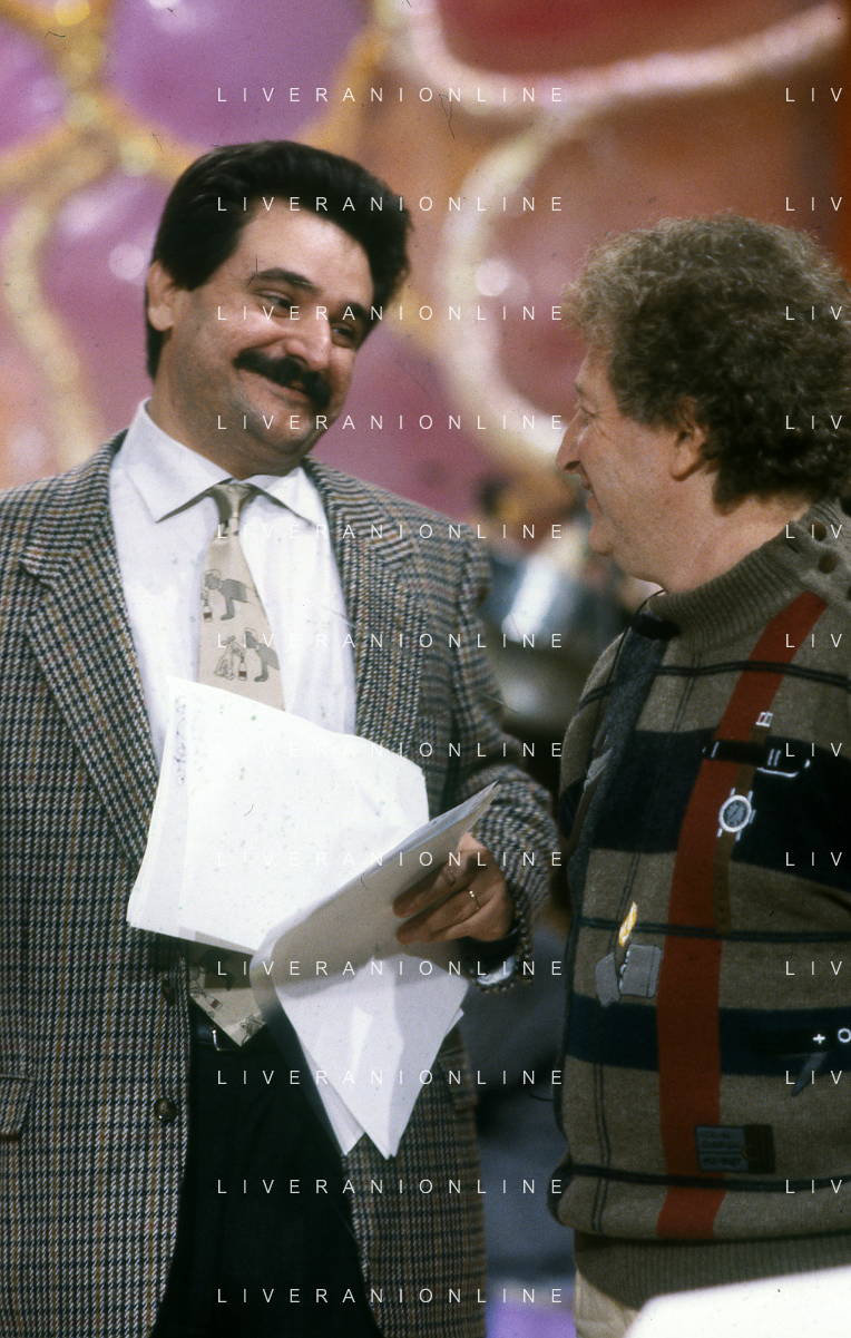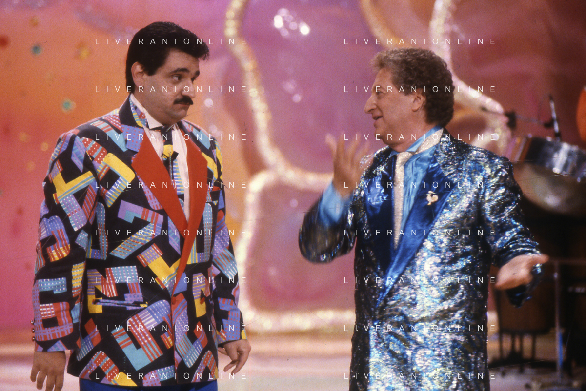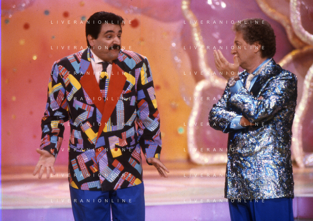 DIAP-RETROSPETTIVA SERGIO VASTANO ATTORE-COMICO NELLA FOTO SERGIO VASTANO NELL'ANNO 1989 NELLA TRASMISSIONE TELEVISIVA“TELEVIGGIU' “ CON GIANFRANCO D'ANGELO AG ALDO LIVERANI SAS