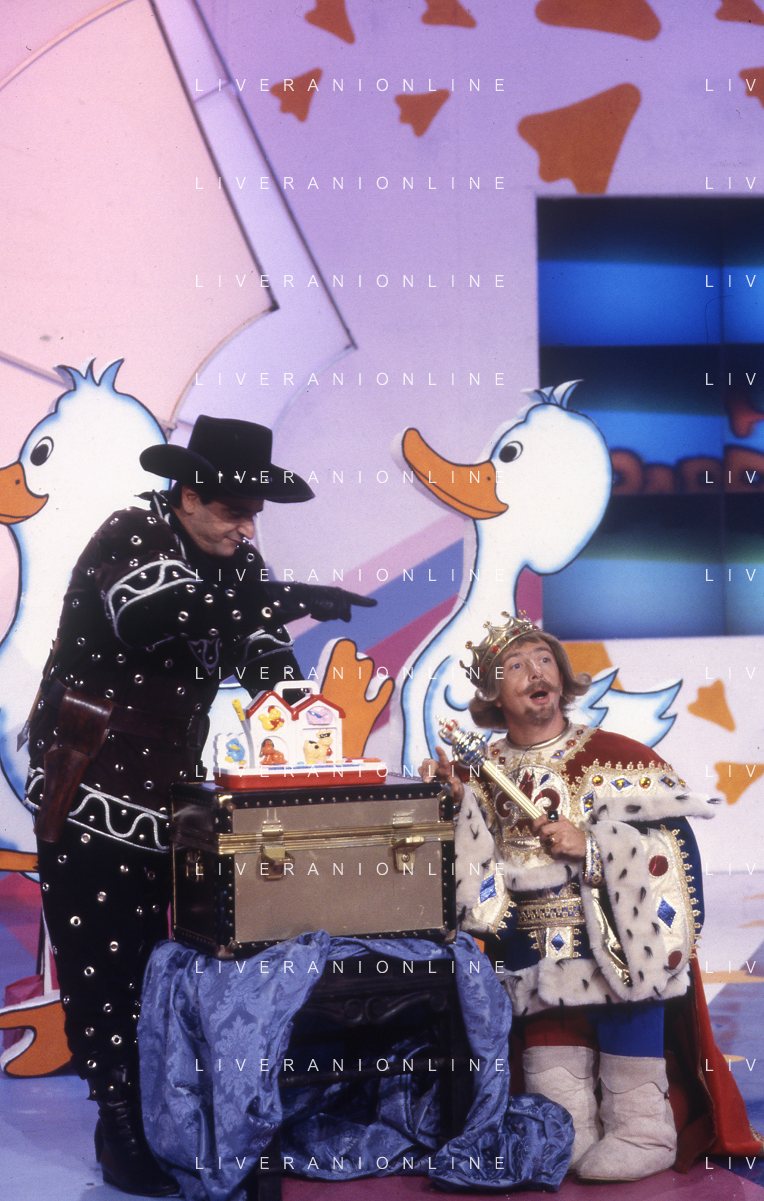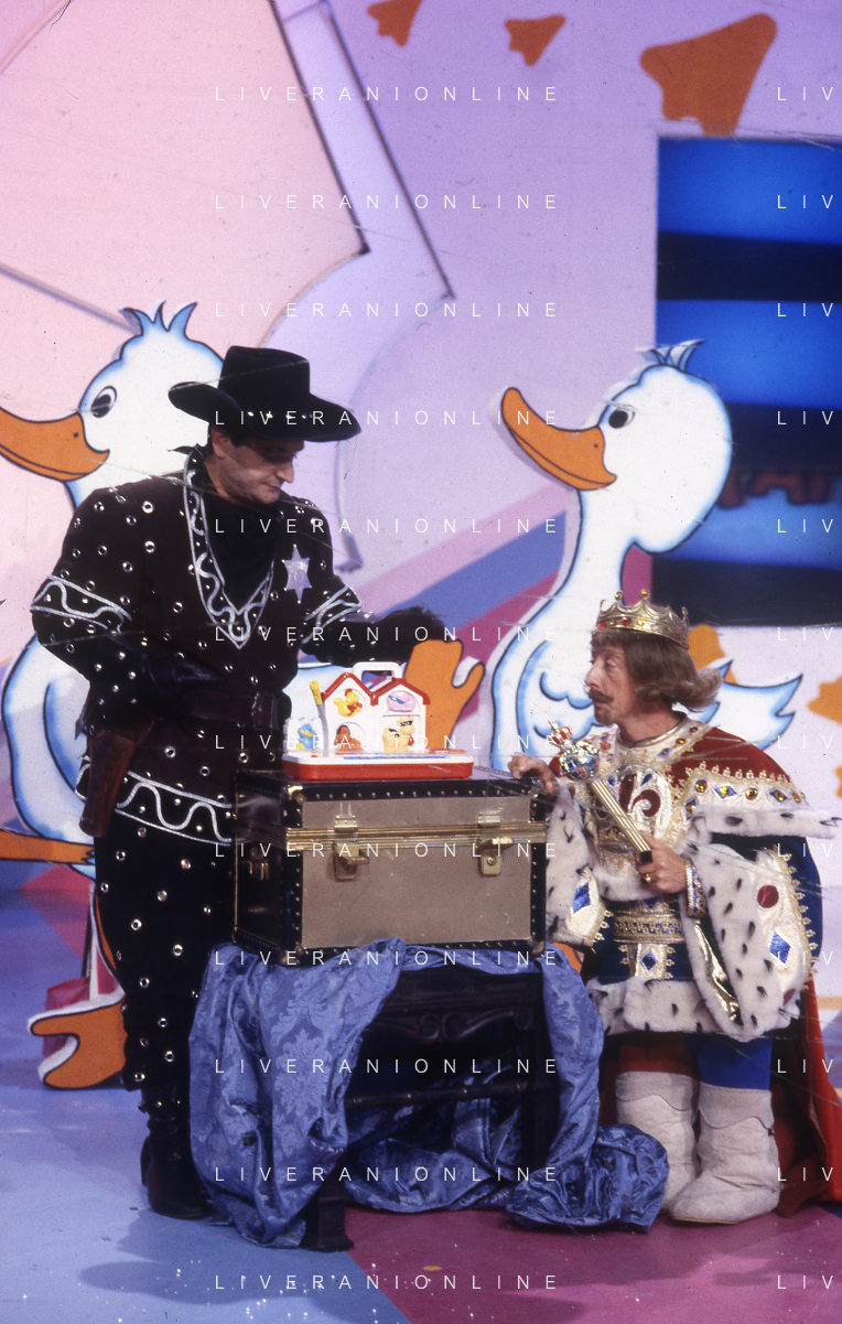RETROSPETTIVA SERGIO VASTANO ATTORE-COMICO NELLA FOTO SERGIO VASTANO NELLA TRASMISSIONE TELEVISIVA “PAPERISSIMA “ CON ENZO BRASCHI AG ALDO LIVERANI SAS