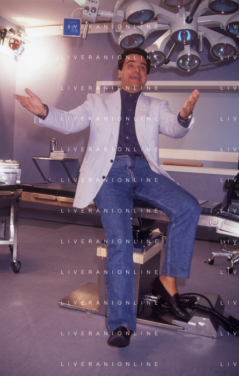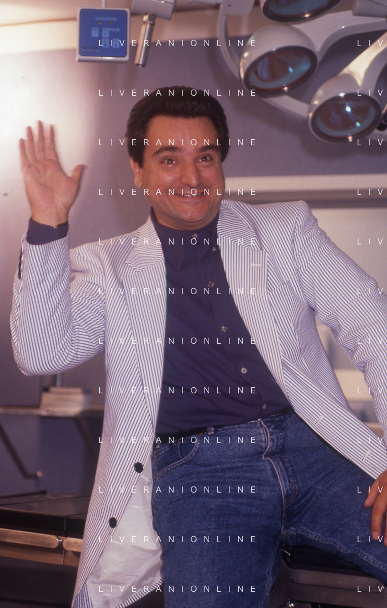 DIAP-RETROSPETTIVA SERGIO VASTANO ATTORE-COMICO NELLA FOTO SERGIO VASTANO PRESENTAZIONE DELLA TRASMISSIONE TELEVISIVA “ODIENS“ NELL'ANNO 1989 AG ALDO LIVERANI SAS