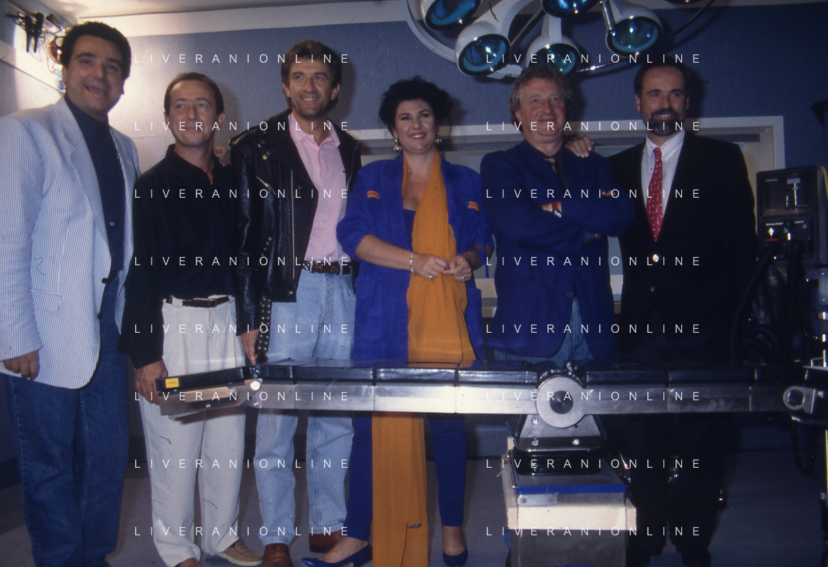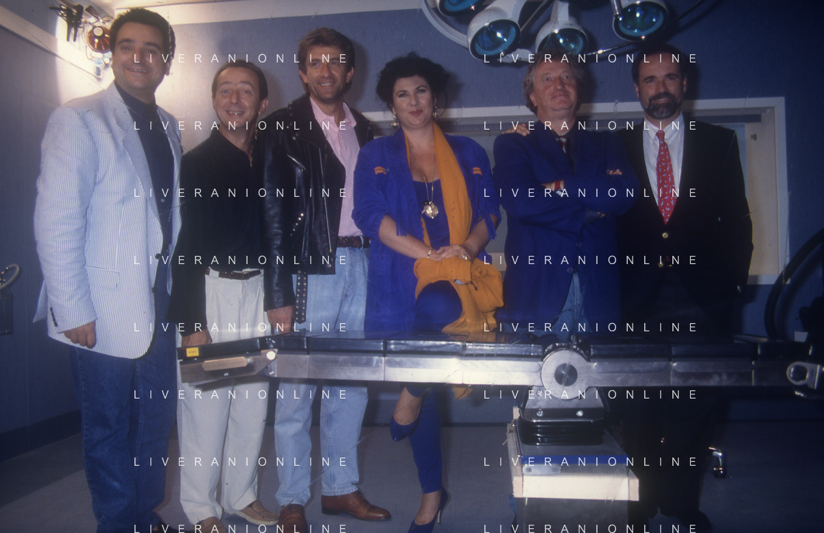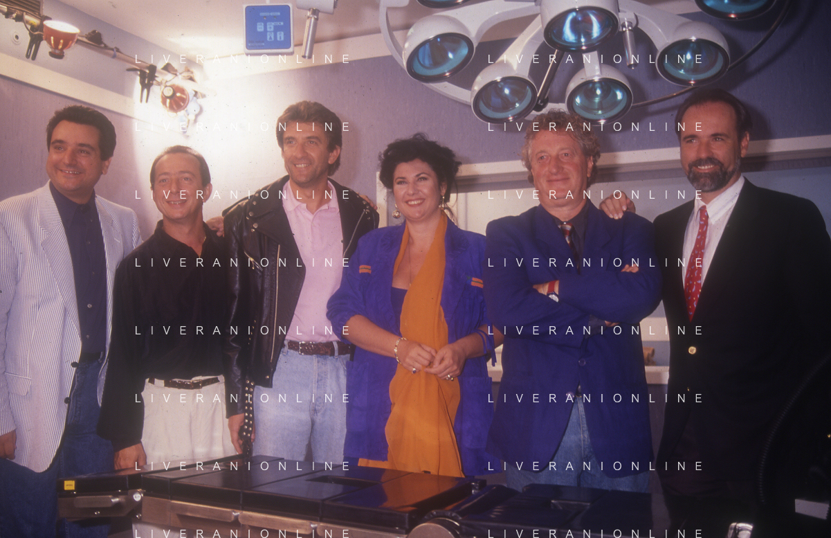 DIAP-RETROSPETTIVA SERGIO VASTANO ATTORE-COMICO NELLA FOTO SERGIO VASTANO CON ENZO BRASCHI-EZIO GREGGIO-MARISA LAURITO-GIANFRANCO D'ANGELO E ANTONIO RICCI PRESENTAZIONE DELLA TRASMISSIONE TELEVISIVA “ODIENS“ NELL'ANNO 1989 AG ALDO LIVERANI SAS