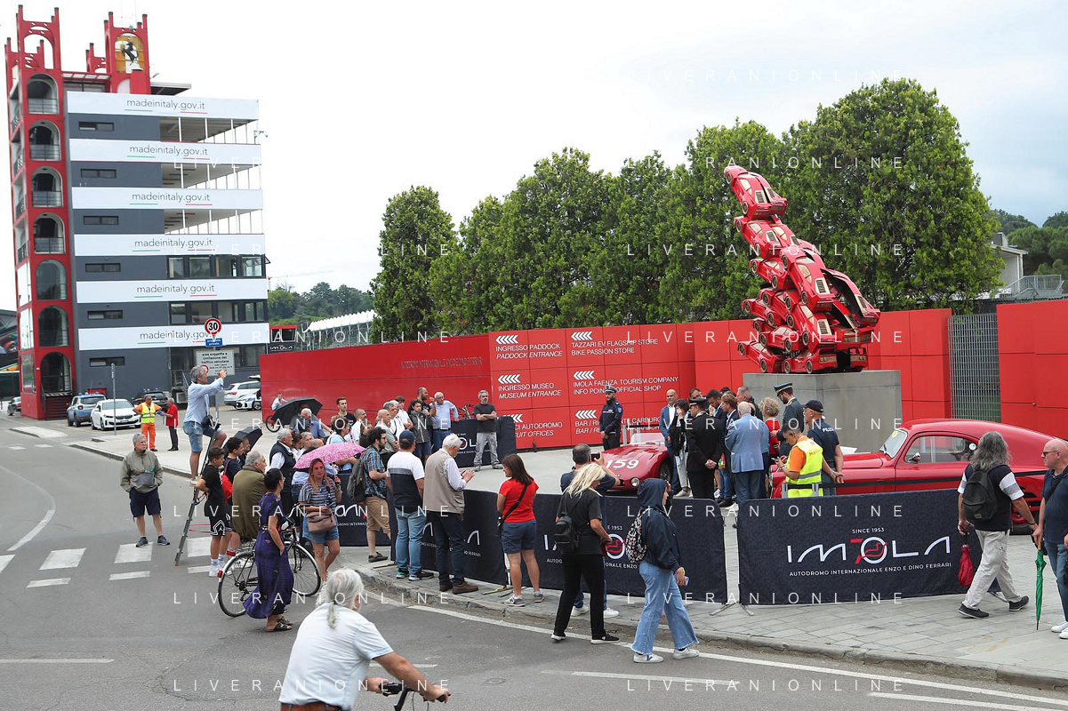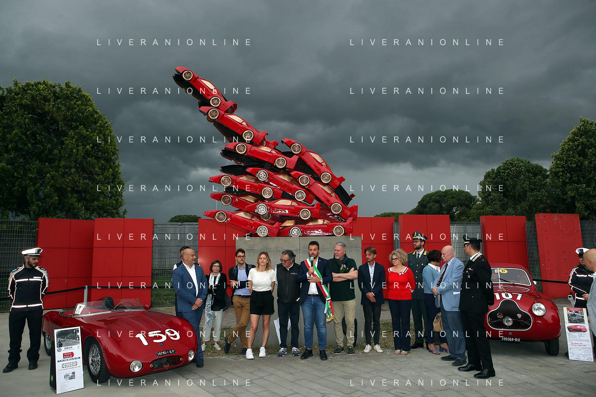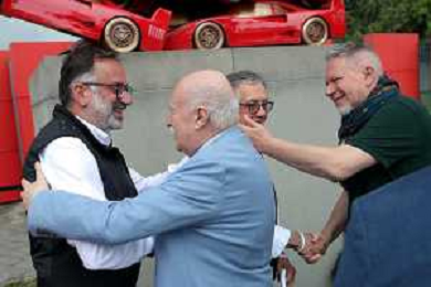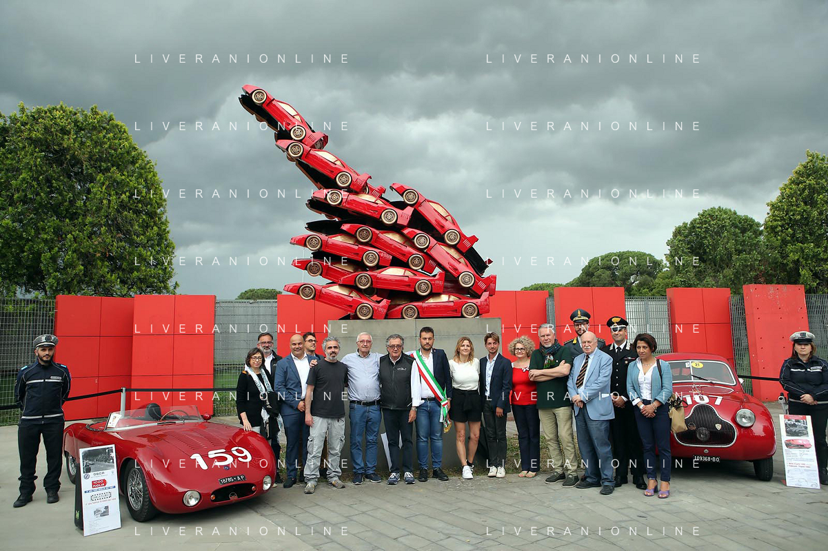 IMOLA AUTODROMO ENZO E DINO FERRARI INAUGURAZIONE DEL RESTAURO DEL MONUMENTO DI ARMAN PRESENZA DEL SINDACO MARCO PANIERI GIANCARLO MINARDI PIETRO BENVENUTI ELENA PENAZZI AUTORE DEL RESTAURO BRUNO BRUSA FORZE DELL' ORDINE FEDERICO BENDINELLI NELLA FOTO DA SINISTRA PIETRO BENVENUTI DIRETTORE DELL'AUTODROMO EX PRESIDENTE DELL'AUTODROMO FEDERICO BENDINELLI,PRESIDENTE DELL'AUTODROMO GIANCARLO MINARDI E EX SINDACO DI IMOLA RAFFAELE DE BRASI ©SANNA/AGENZIA ALDO LIVERANI SAS