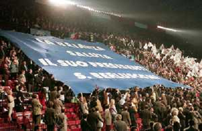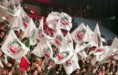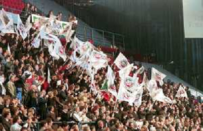 Neg Col- PRIMO CONGRESSO NAZIONALE DEL PARTITO DI FORZA ITALIA, AD ASSAGO (MILANO) DAL 16-18 APRILE 1998 NELLA FOTO I SOSTENITORI CON LE BANDIERE AG ALDO LIVERANI SAS