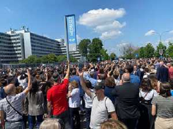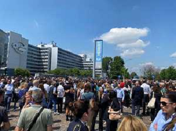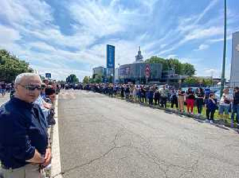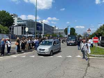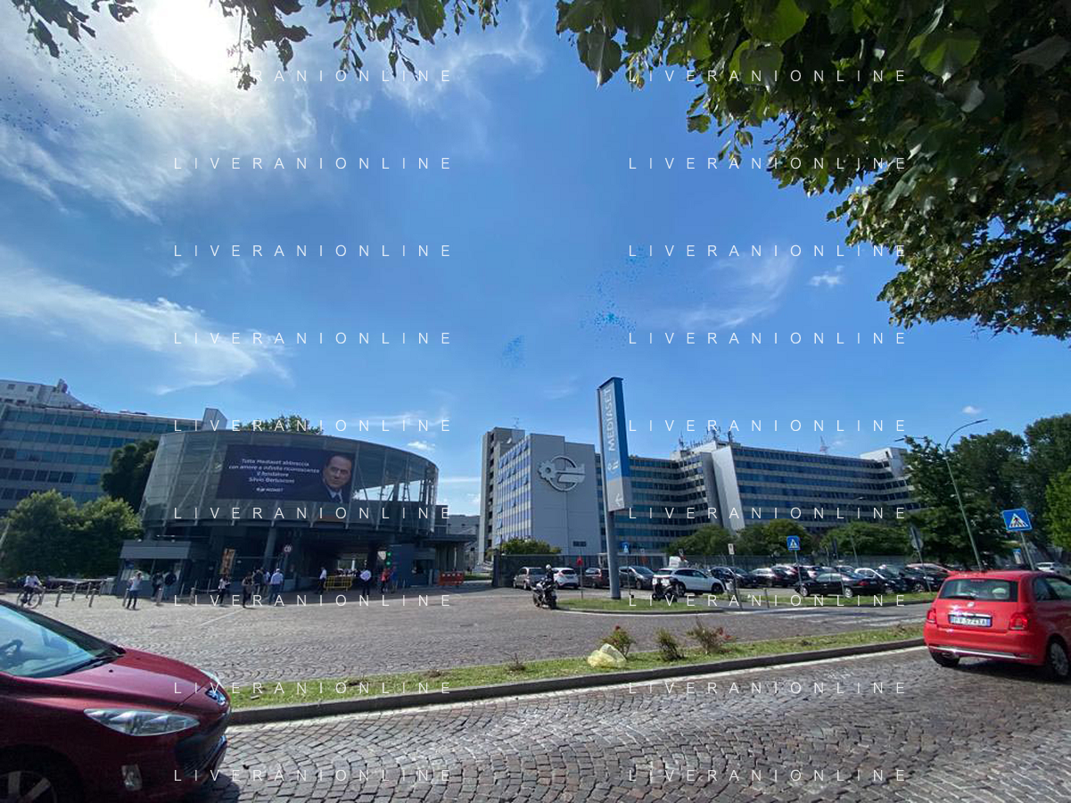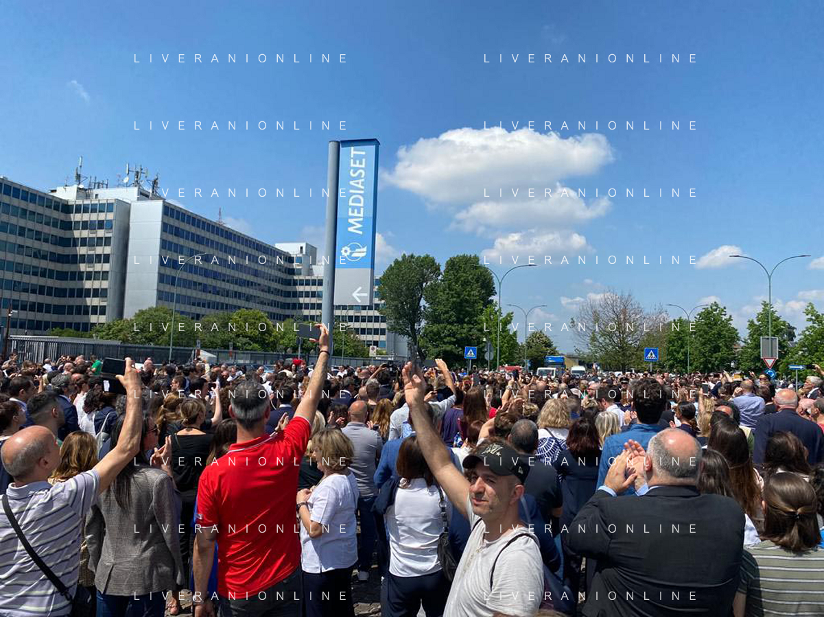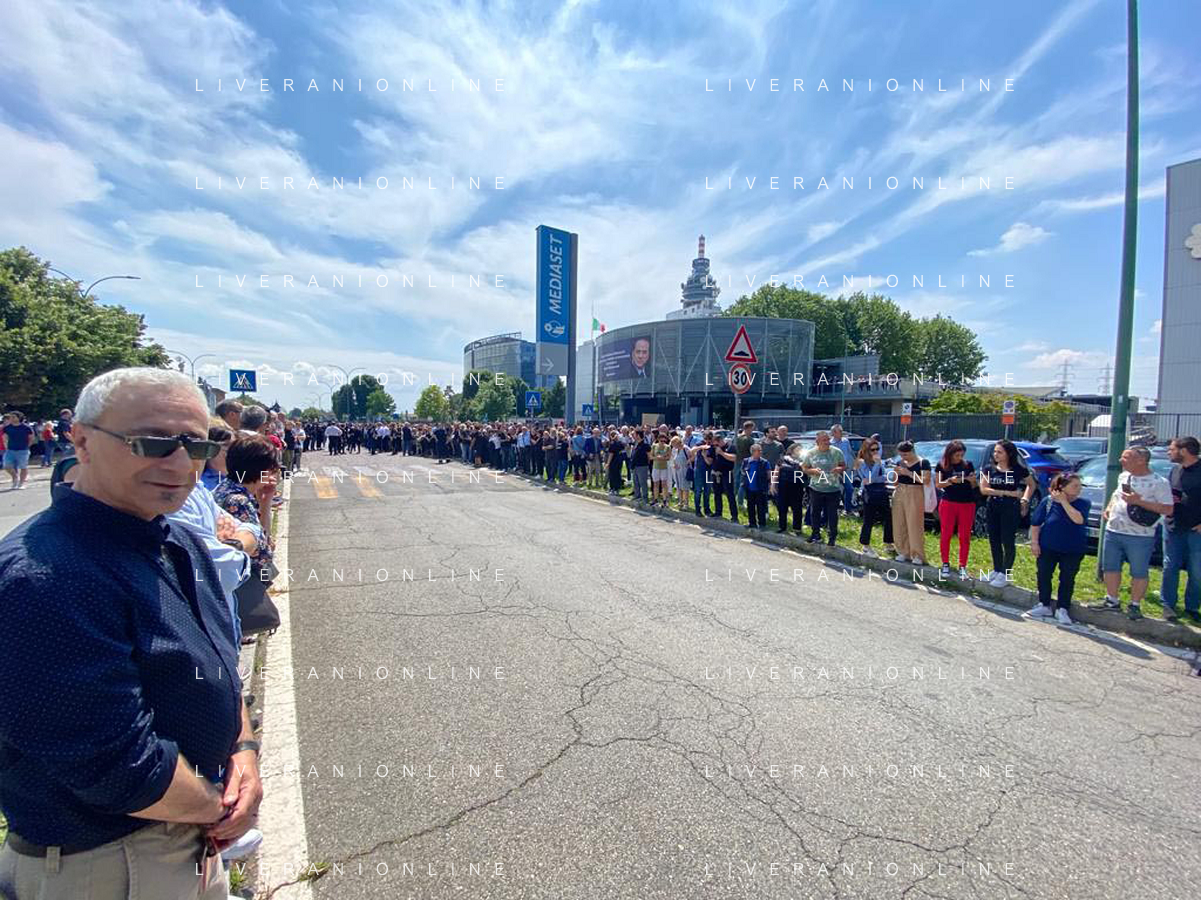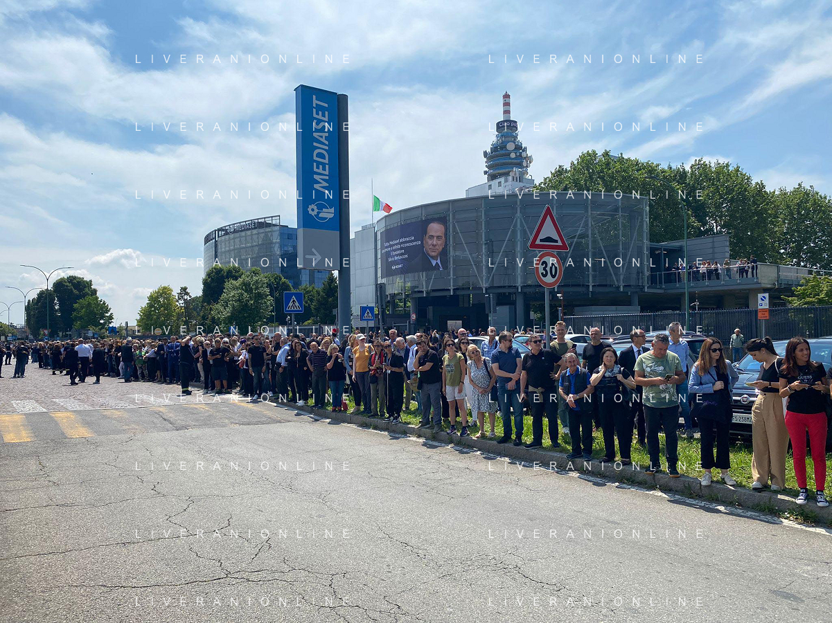 SEDE MEDIASET COLOGNO MONZESE (MILANO) 14.06.2023 NELLA FOTO FOLLA DI PERSONE IN ATTESA DEL PASSAGGIO DEL FERETRO DI SILVIO BERLUSCONI AGENZIA ALDO LIVERANI SAS