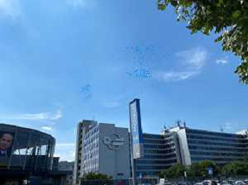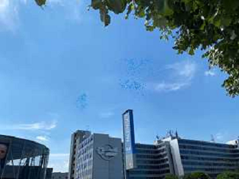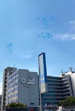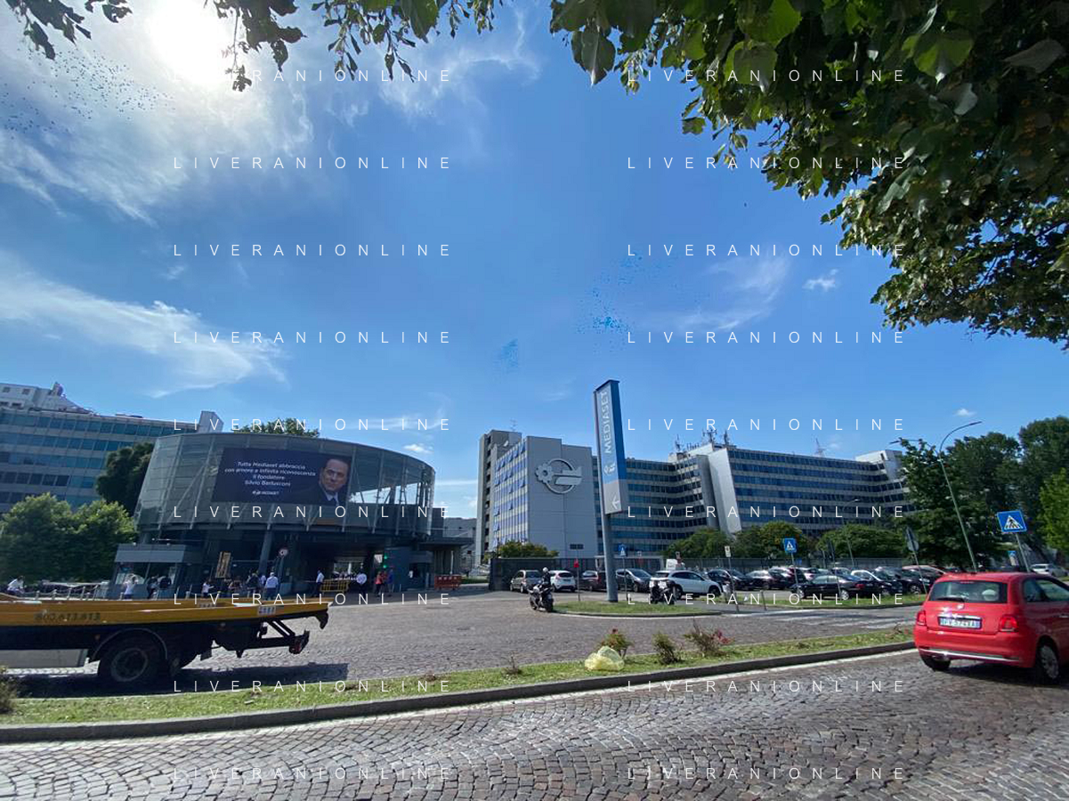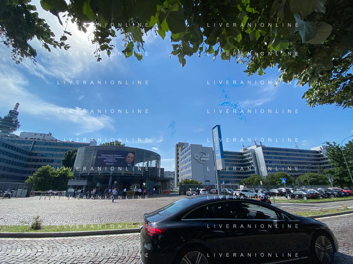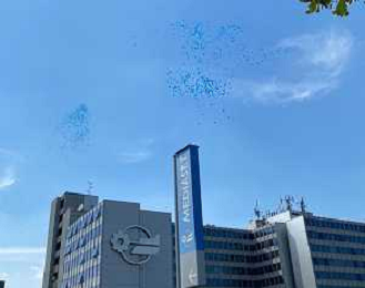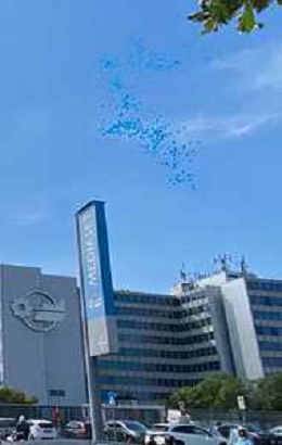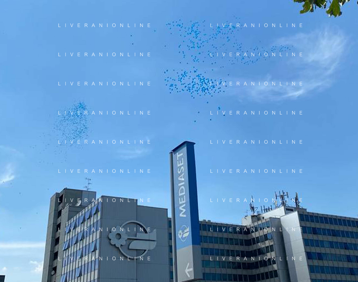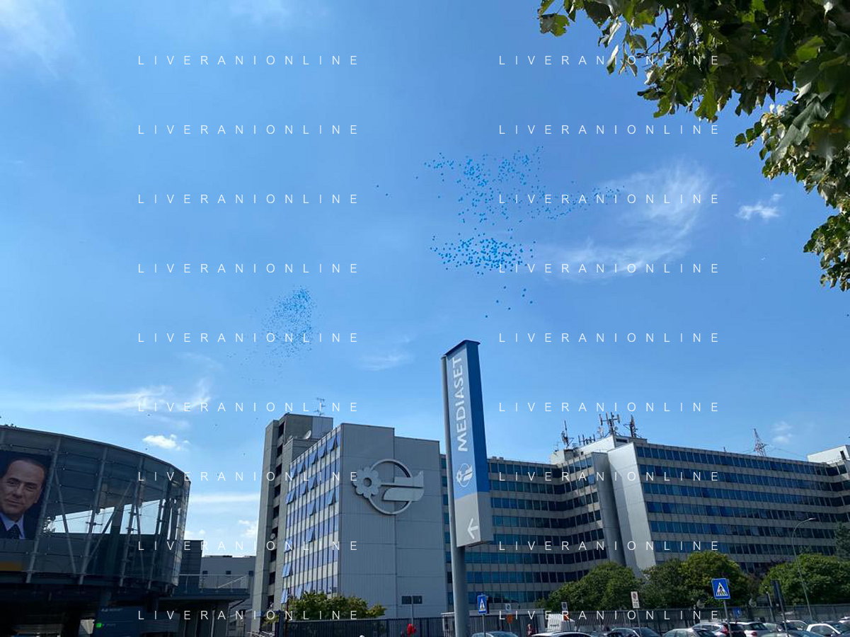 SEDE MEDIASET COLOGNO MONZESE (MILANO) 14.06.2023 NELLA FOTO IL LANCIO DI PALLONCINI AZZURRI NEL GIORNO DEL FUNERALE DI SILVIO BERLUSCONI AGENZIA ALDO LIVERANI SAS