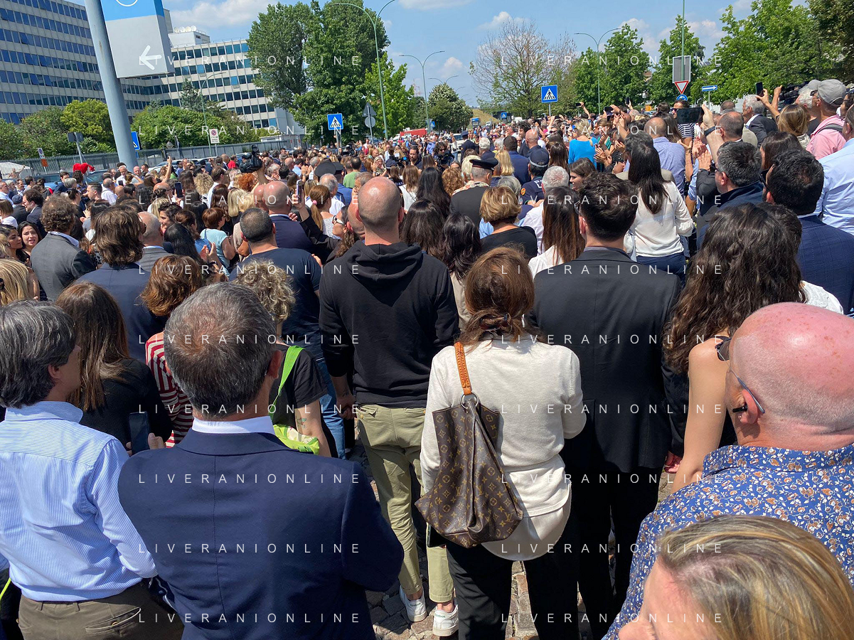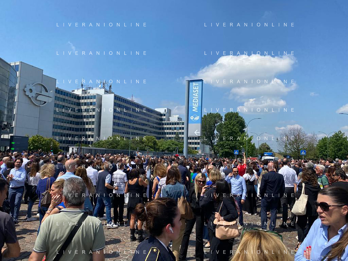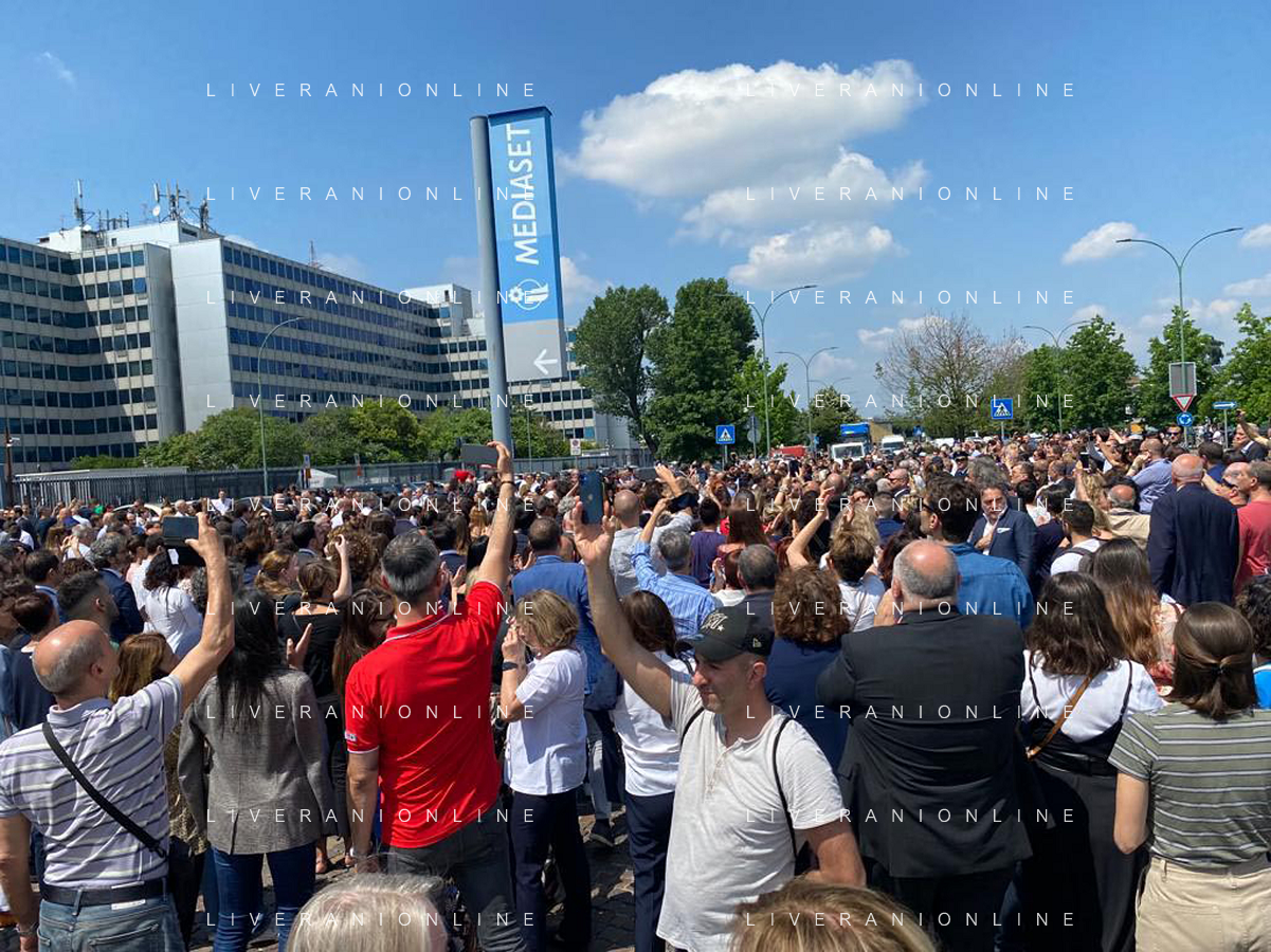 FOLLA DI PERSONE IN ATTESA DEL PASSAGGIO DEL FERETRO DI SILVIO BERLUSCONI DAVANTI ALLA SEDE MEDIASET COLOGNO MONZESE (MILANO) 14.06.2023