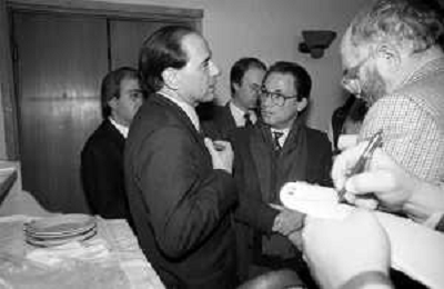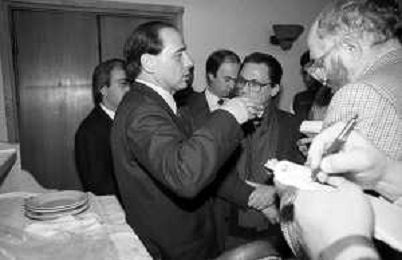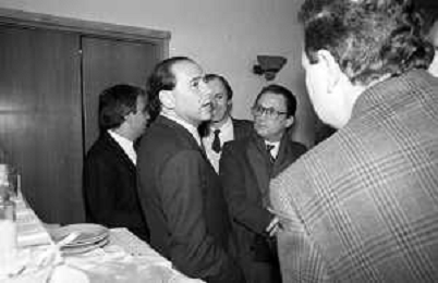 Neg- RETROSPETTIVA SILVIO BERLUSCONI POLITICO-STATISTA NELLA FOTO CON IL GIORNALISTA MAURIZIO MOSCA NEL 1986 AG ALDO LIVERANI SAS