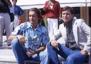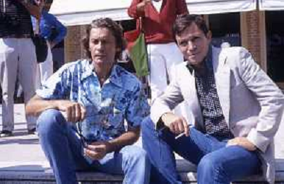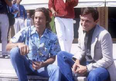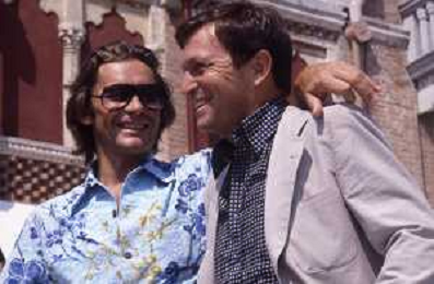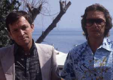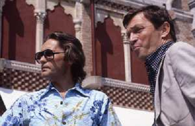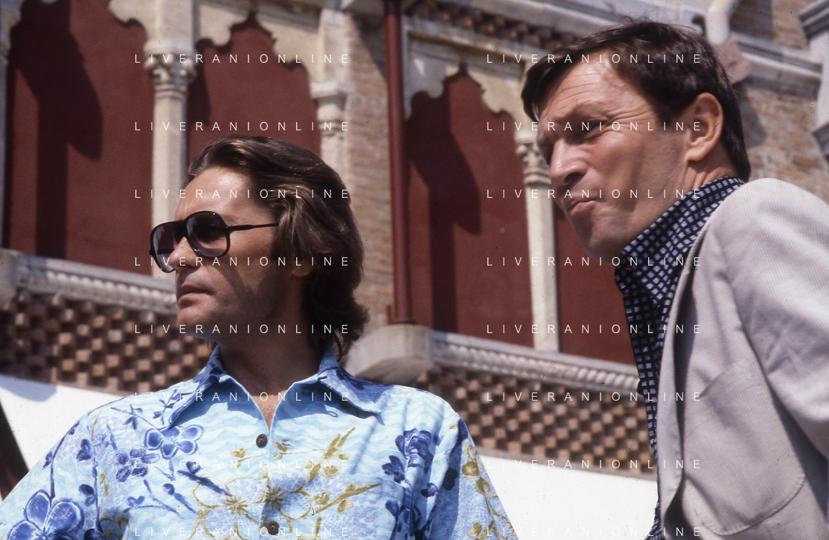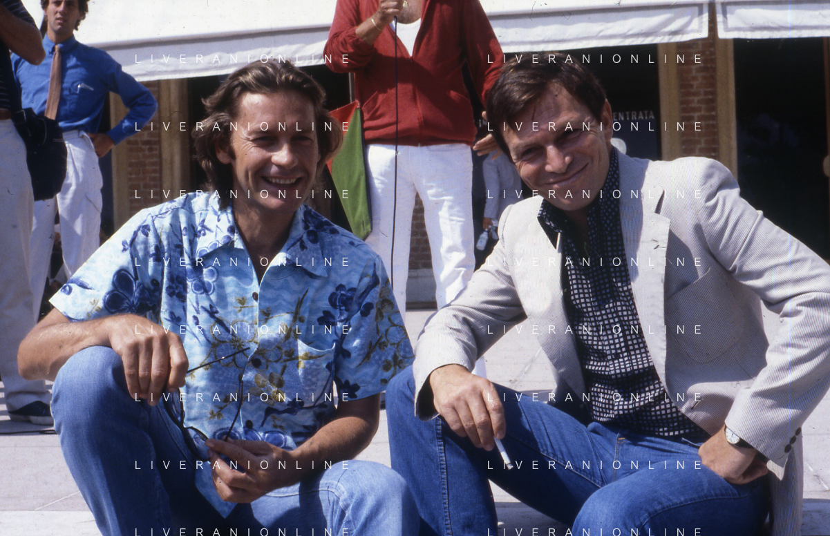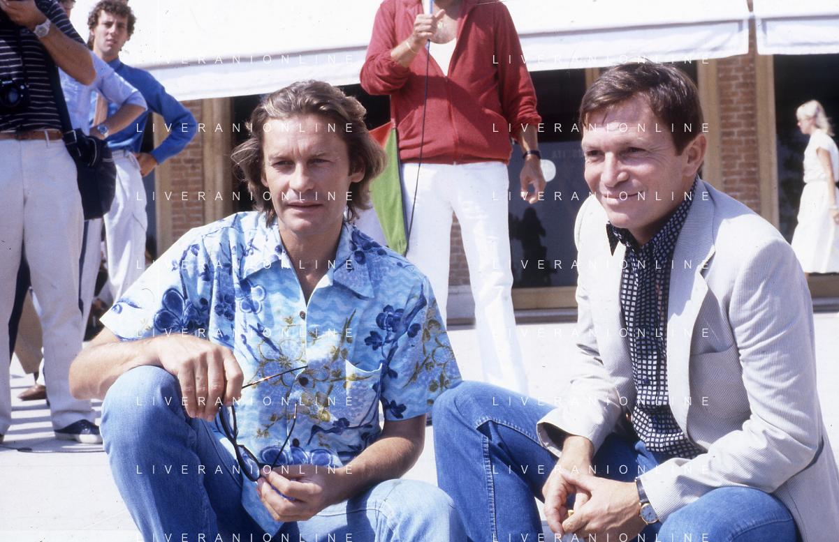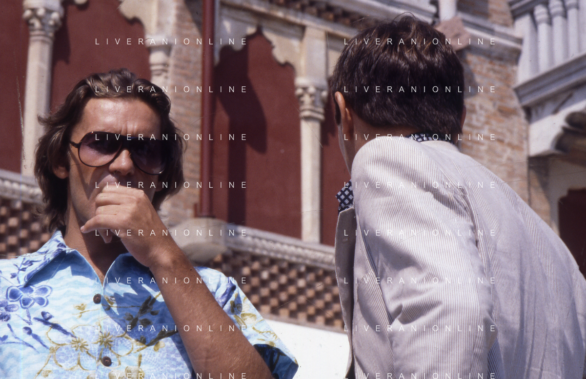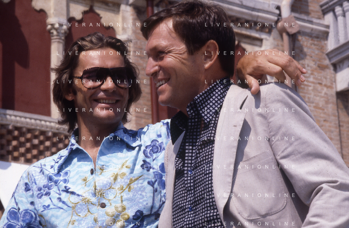 DIAP-RETROSPETTIVA HELMUT BERGER ATTORE NELLA FOTO HELMUT BERGER CON UMBERTO ORSINI A VENEZIA NELL'ANNO 1980 AG ALDO LIVERANI SAS