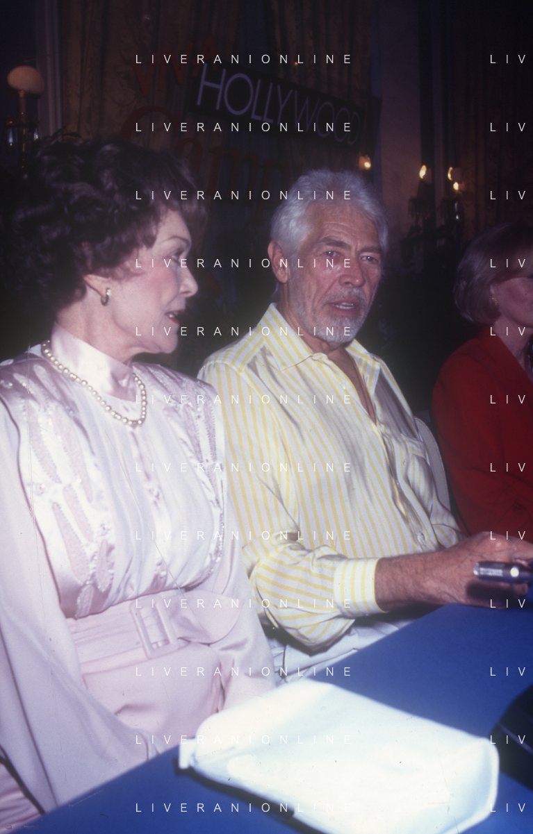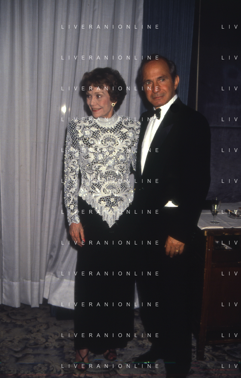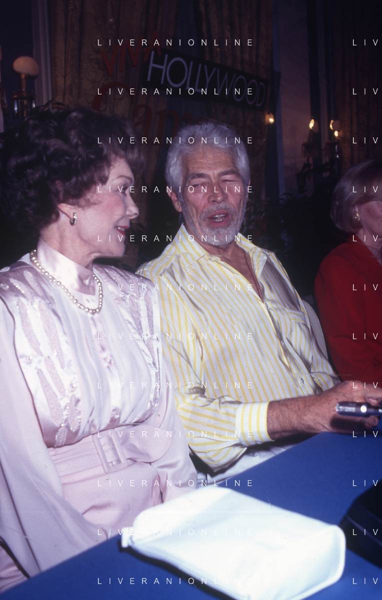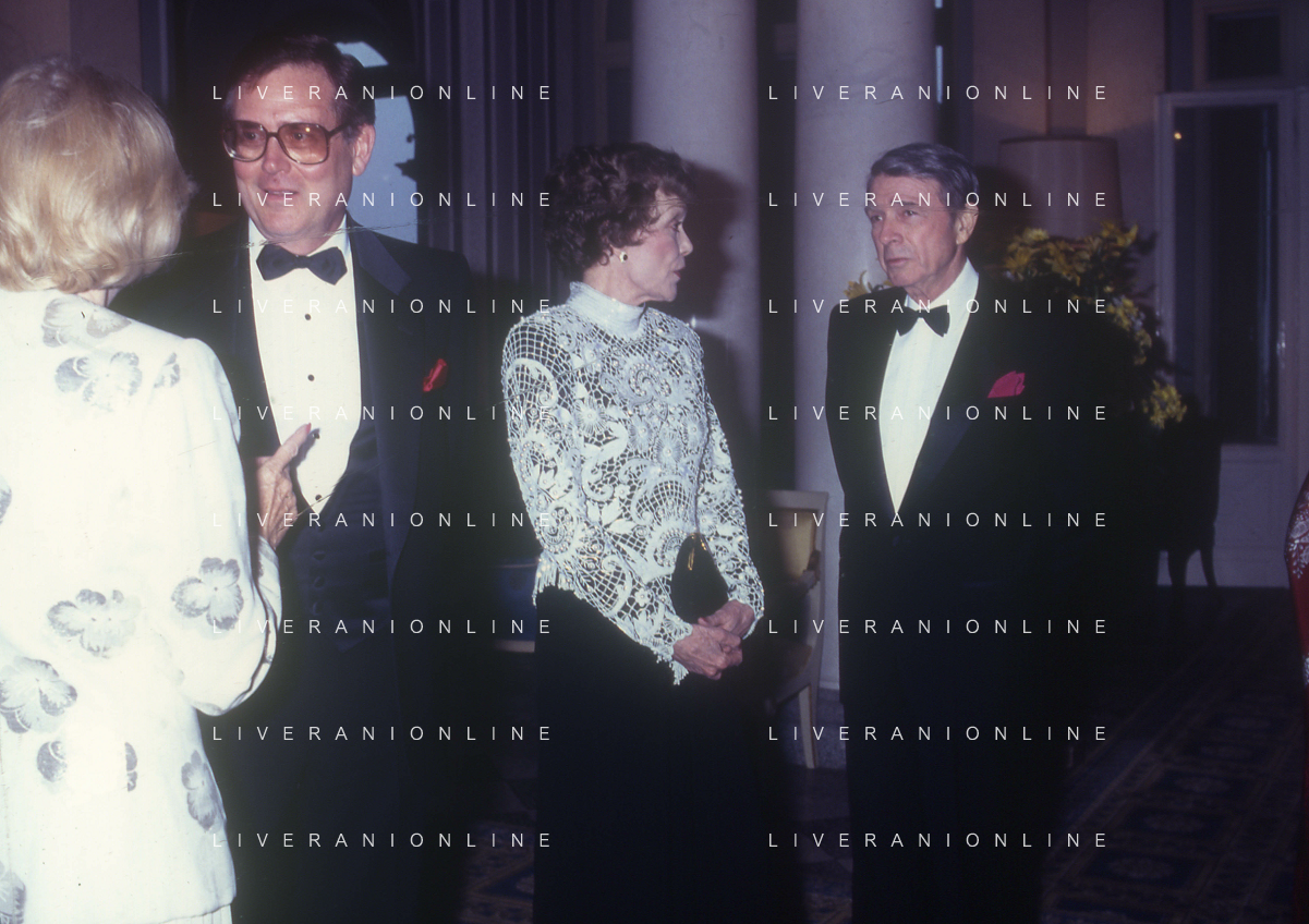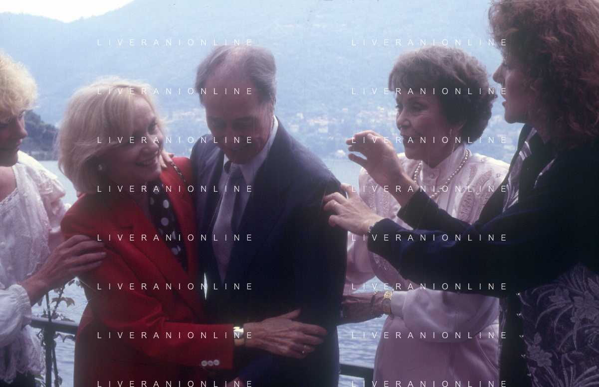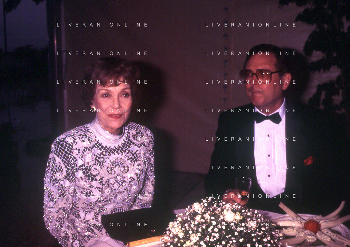 COL-RETROSPETTIVA JANE WYMAN PSEUDONIMO DI SARAH JANE MAYFIELD ATTRICE CANTANTE E BALLERINA NELLA FOTO JANE WYMAN PSEUDONIMO DI SARAH JANE MAYFIELD A CERNOBBIO VILLA D'ESTE NELL'ANNO 1990 CON JAMES COBURN FOTO THEMA-AG ALDO LIVERANI SAS