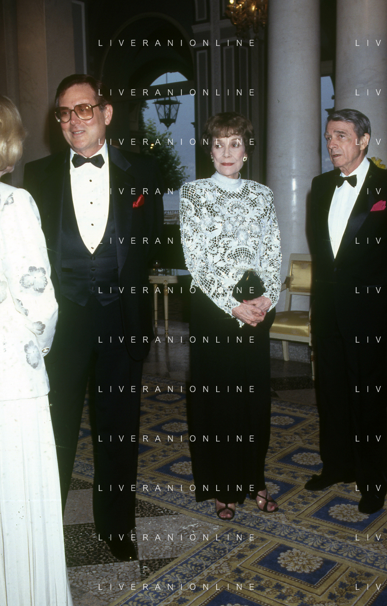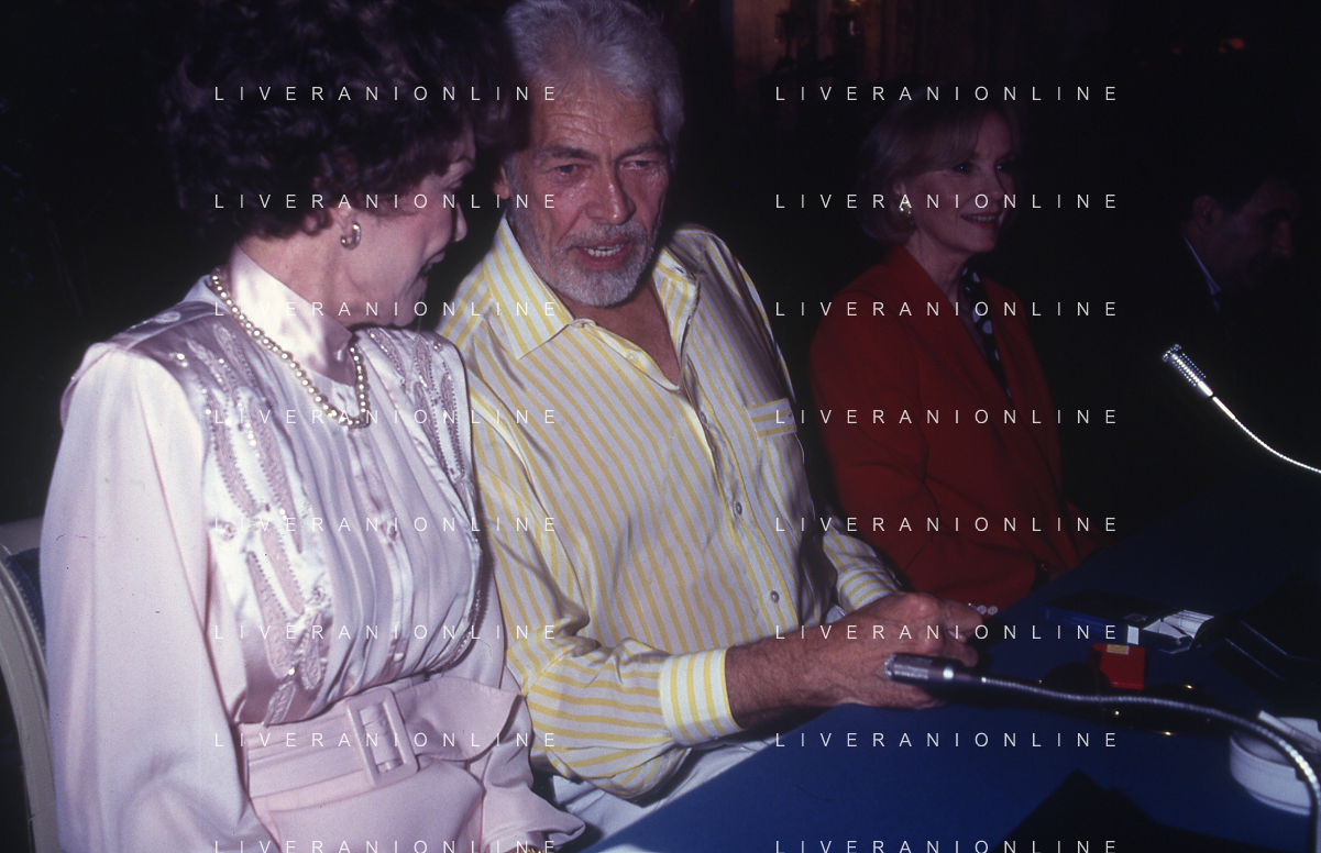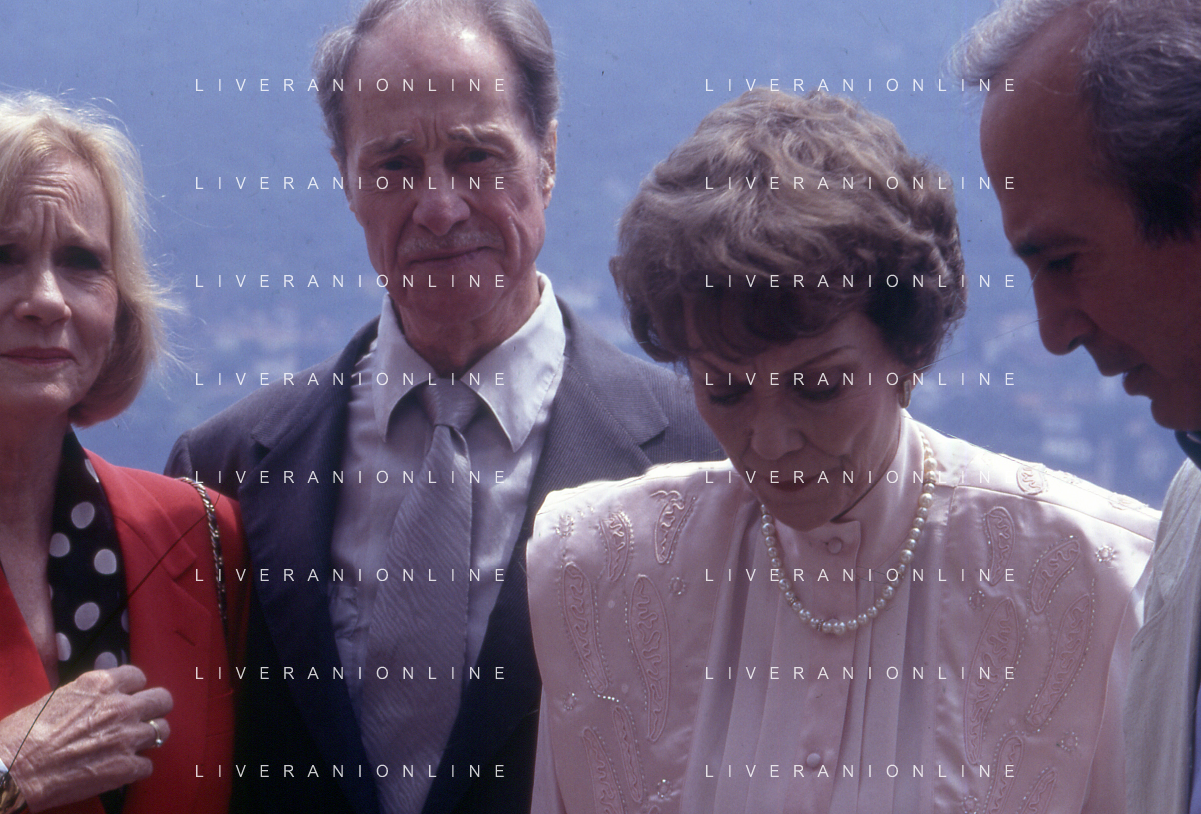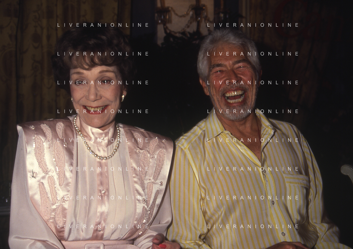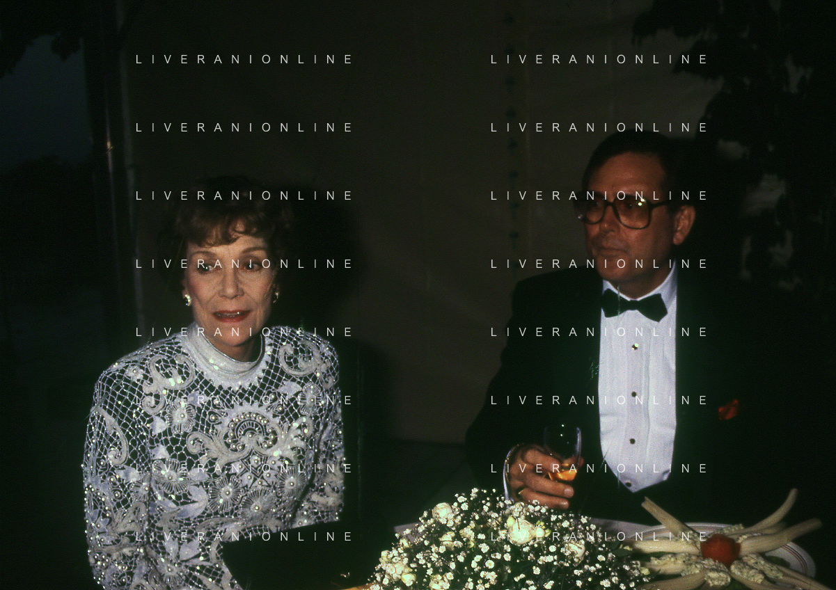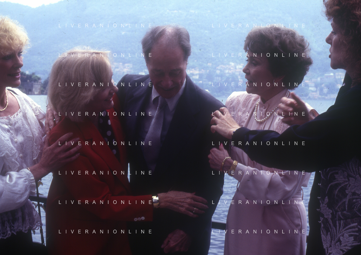 COL-RETROSPETTIVA JANE WYMAN PSEUDONIMO DI SARAH JANE MAYFIELD ATTRICE CANTANTE E BALLERINA NELLA FOTO JANE WYMAN PSEUDONIMO DI SARAH JANE MAYFIELD A CERNOBBIO VILLA D'ESTE NELL'ANNO 1990 CON JAMES COBURN FOTO THEMA-AG ALDO LIVERANI SAS