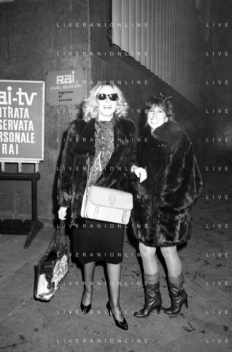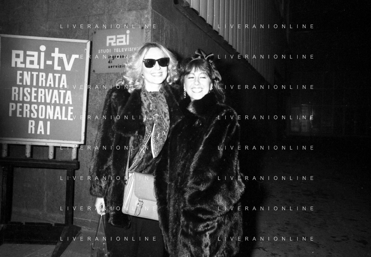 Neg- RETROSPETTIVA LORETTA GOGGI CANTANTE E CONDUTTRICE TELEVISIVA NELLA FOTO CON LA SORELLA DANIELA NEL 1985 AG ALDO LIVERANI SAS