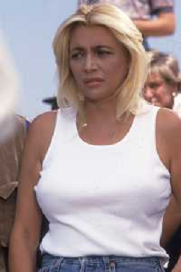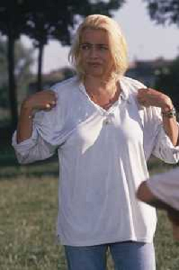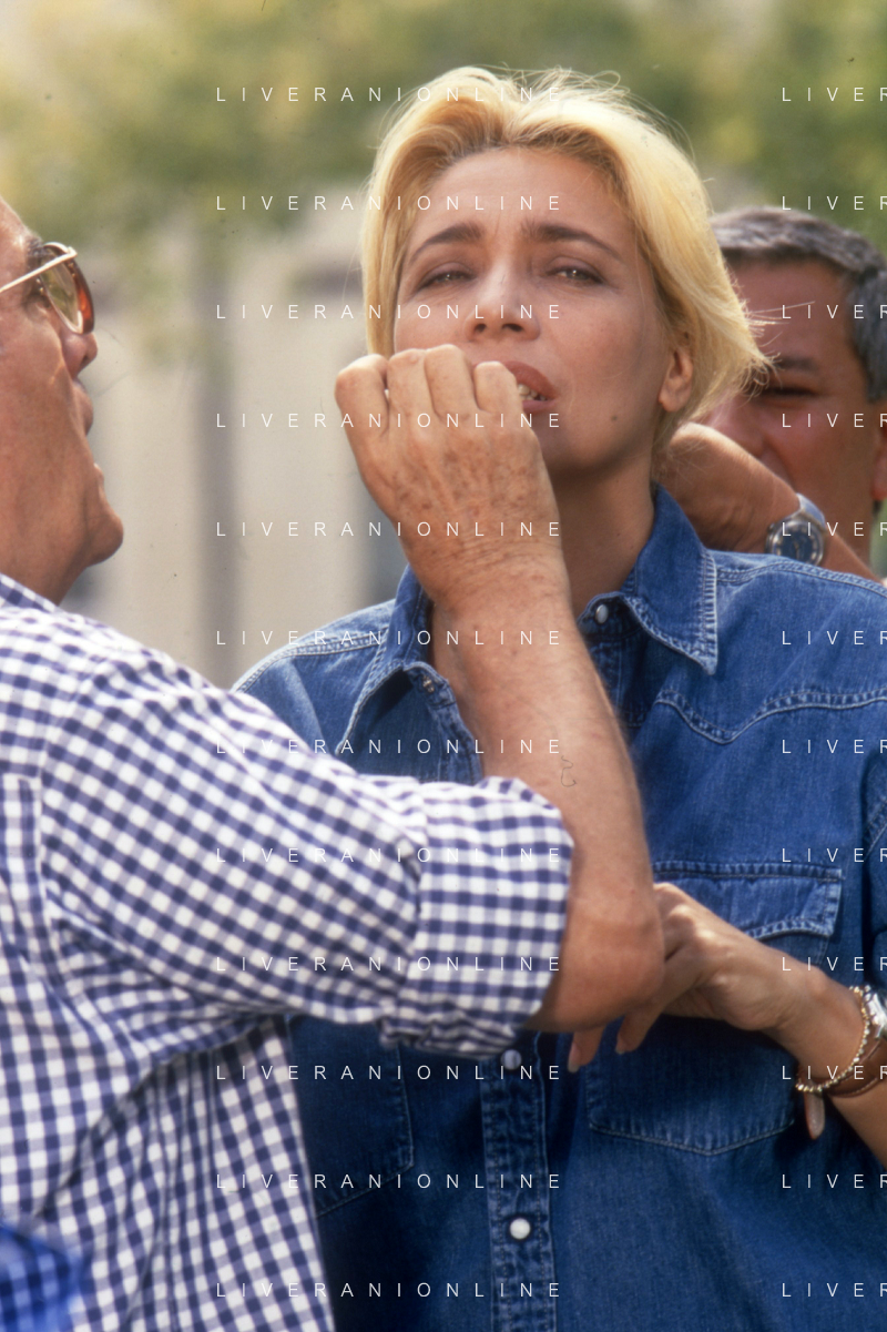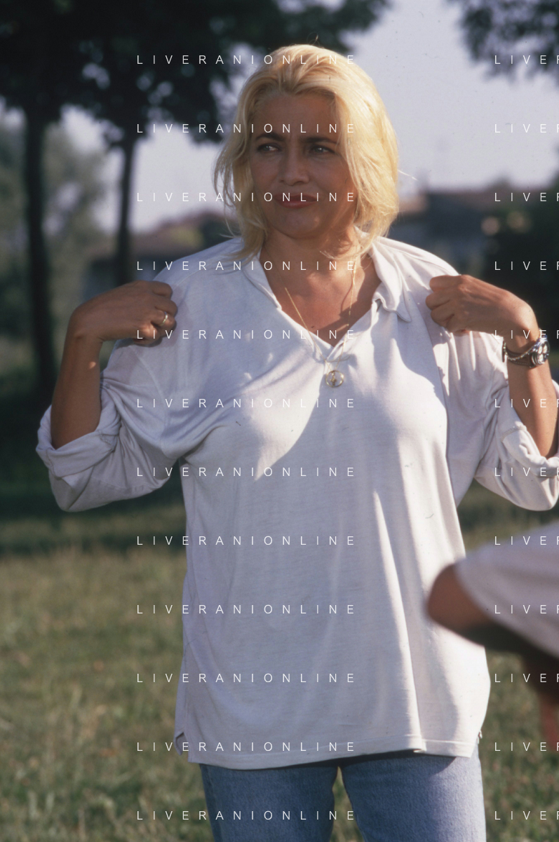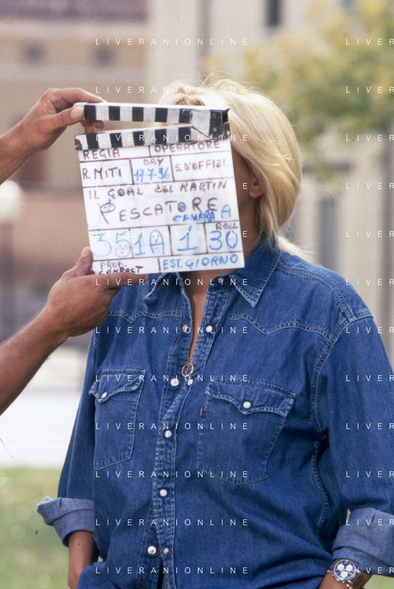 DIAP-RETROSPETTIVA MARA VENIER ATTIRCE E PRESENTATRICE TELEVISIVA NELLA FOTO MARA VENIER SUL SET DEL FILM“IL GOAL DI MARTIN PESCATORE “NELL'ANNO 1997 AG ALDO LIVERANI SAS