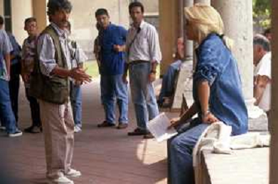 DIAP-RETROSPETTIVA MARA VENIER ATTIRCE E PRESENTATRICE TELEVISIVA NELLA FOTO MARA VENIER E IL REGISTA RIGGERO MITI SUL SET DEL FILM“IL GOAL DI MARTIN PESCATORE “NELL'ANNO 1997 AG ALDO LIVERANI SAS