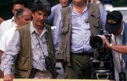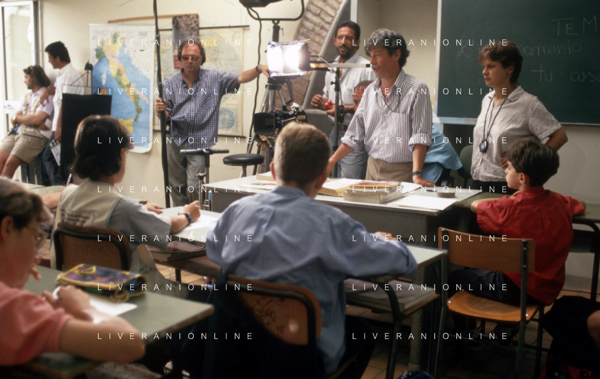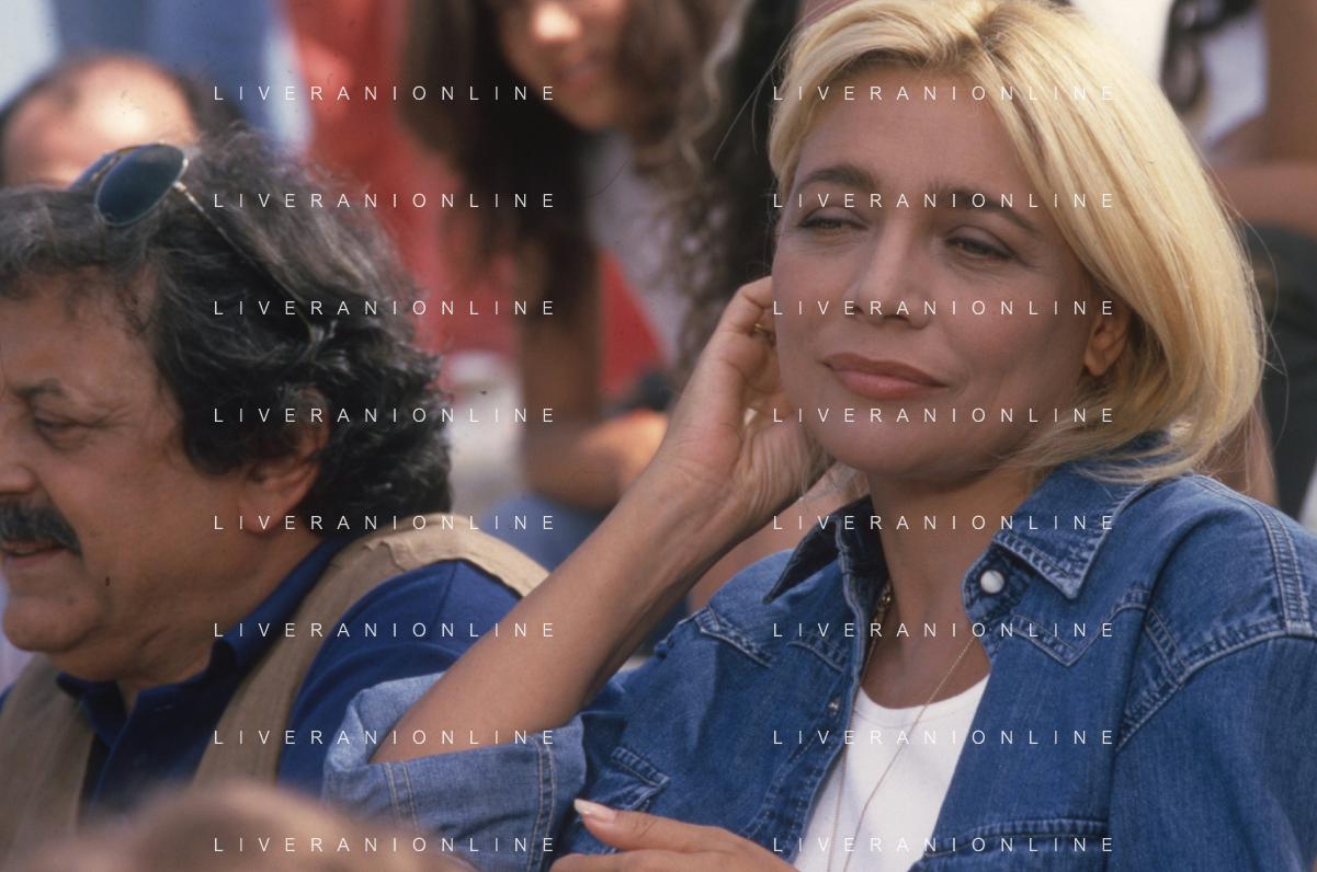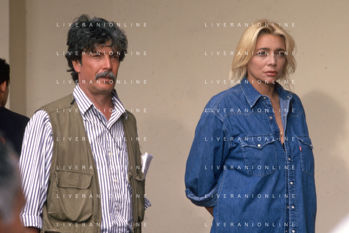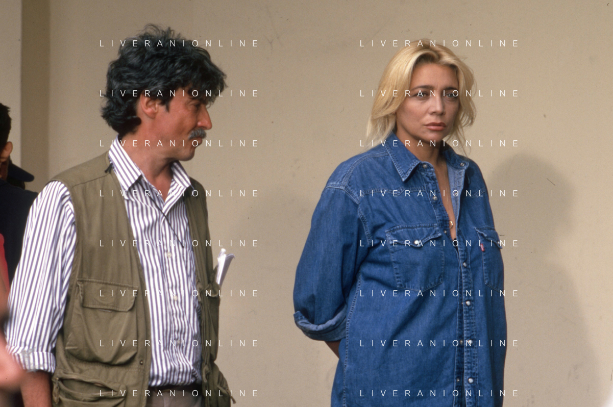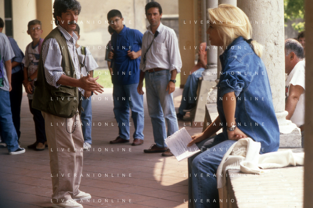 DIAP-RETROSPETTIVA MARA VENIER ATTIRCE E PRESENTATRICE TELEVISIVA NELLA FOTO IL REGISTA RUGGERO MITI SUL SET DEL FILM“IL GOAL DI MARTIN PESCATORE “NELL'ANNO 1997 AG ALDO LIVERANI SAS