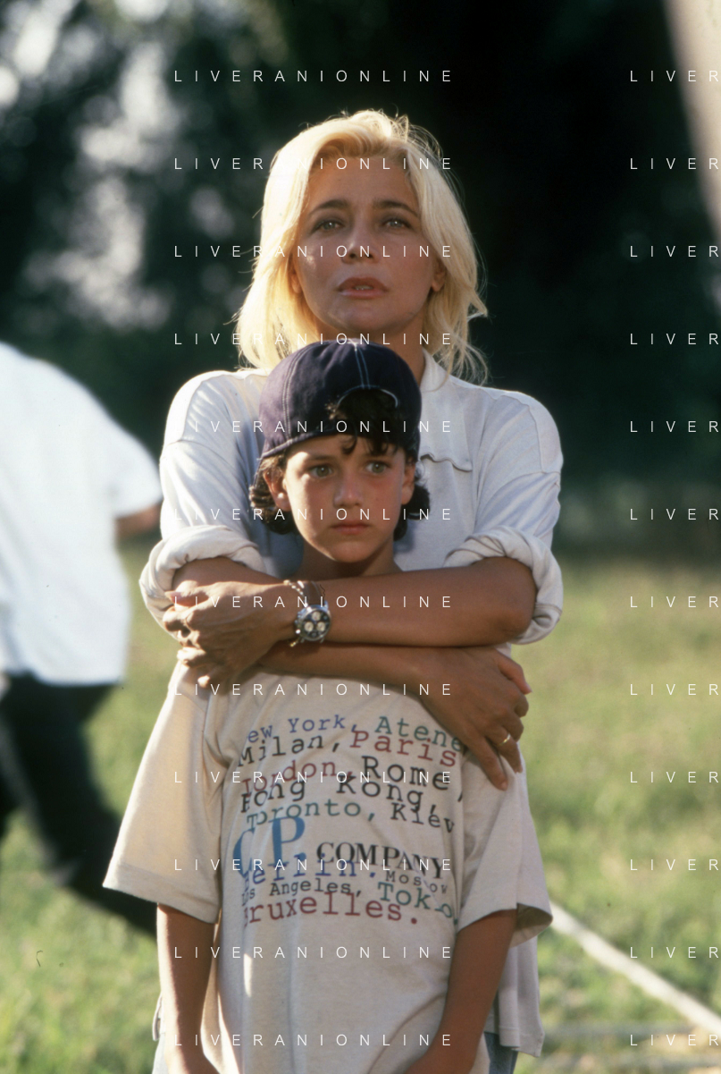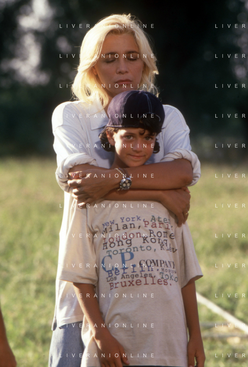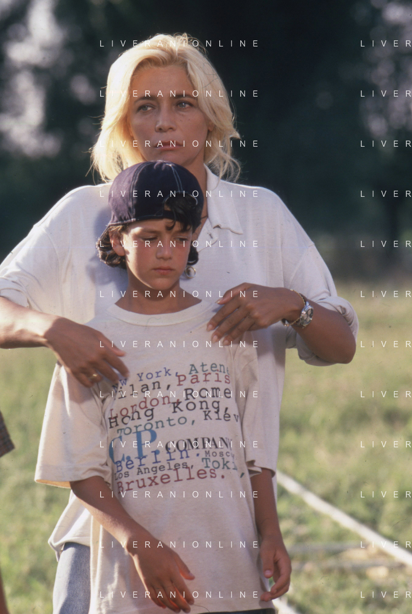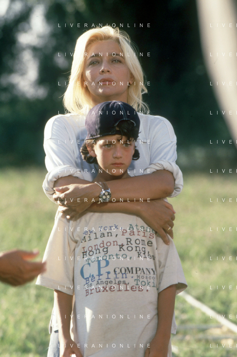 DIAP-RETROSPETTIVA MARA VENIER ATTIRCE E PRESENTATRICE TELEVISIVA NELLA FOTO MARA VENIER CON TOBIAS HOESL SUL SET DEL FILM“IL GOAL DI MARTIN PESCATORE “NELL'ANNO 1997 AG ALDO LIVERANI SAS