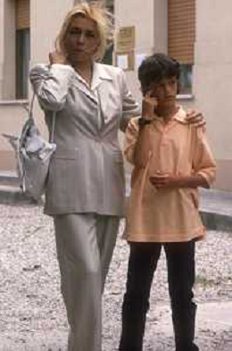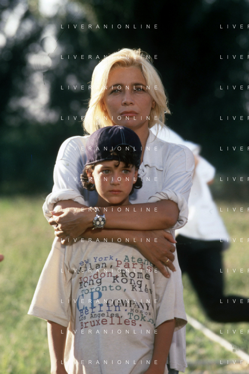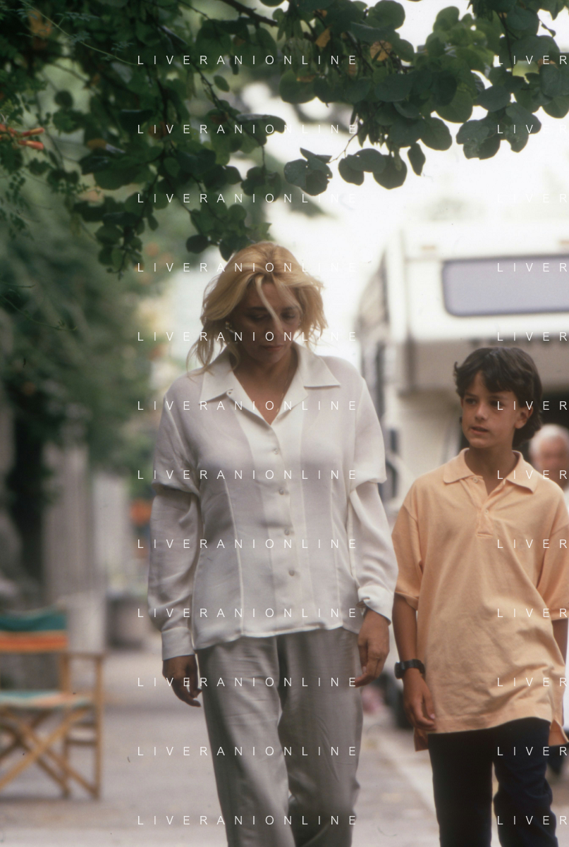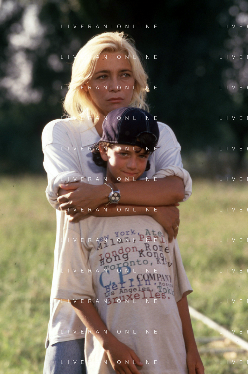 DIAP-RETROSPETTIVA MARA VENIER ATTIRCE E PRESENTATRICE TELEVISIVA NELLA FOTO MARA VENIER CON TOBIAS HOESL SUL SET DEL FILM“IL GOAL DI MARTIN PESCATORE “NELL'ANNO 1997 AG ALDO LIVERANI SAS