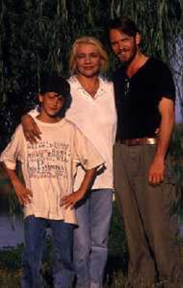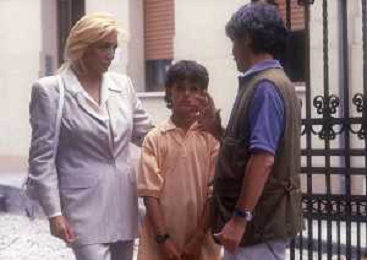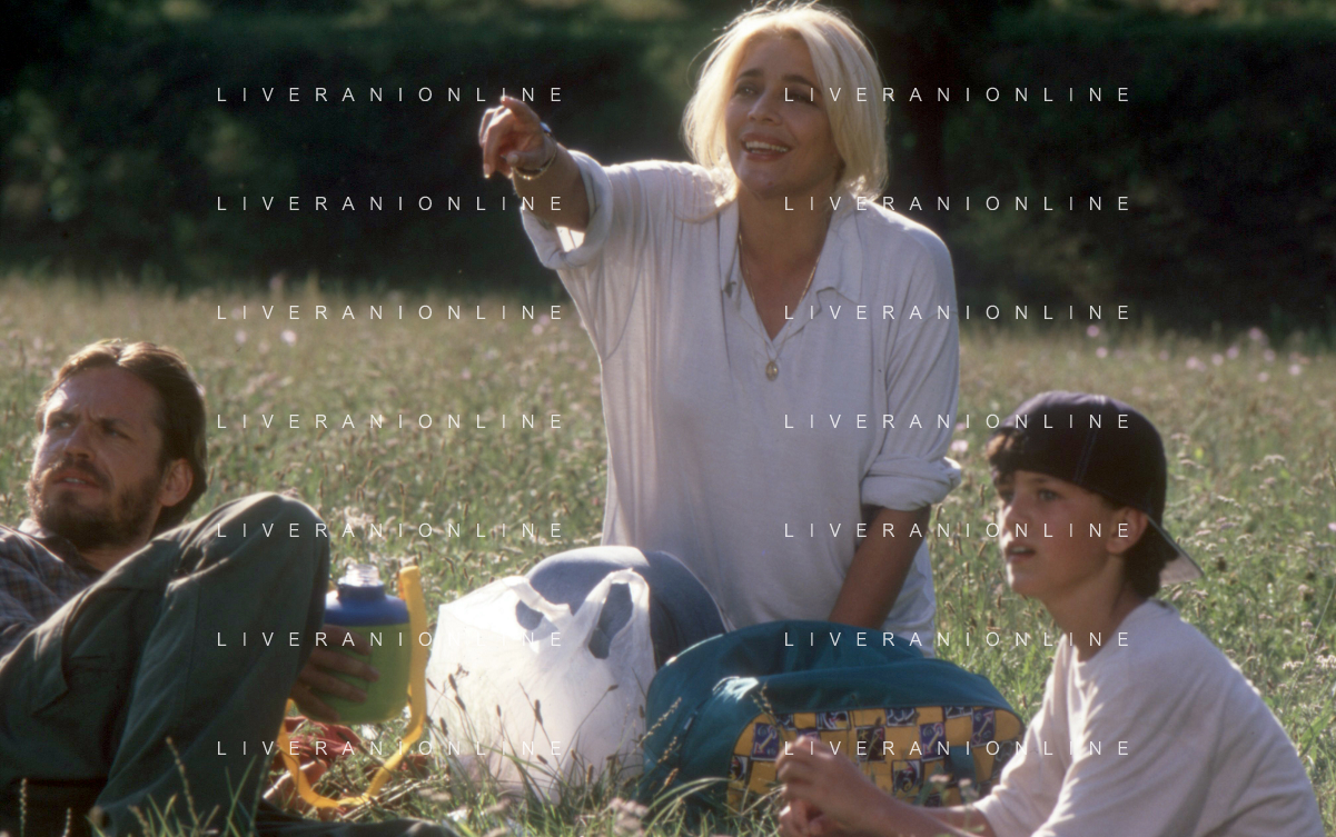DIAP-RETROSPETTIVA MARA VENIER ATTIRCE E PRESENTATRICE TELEVISIVA NELLA FOTO MARA VENIER CON LORENZO DE ANGELIS E TOBIAS HOESL SUL SET DEL FILM“IL GOAL DI MARTIN PESCATORE “NELL'ANNO 1997 AG ALDO LIVERANI SAS