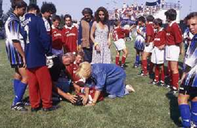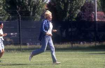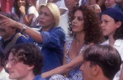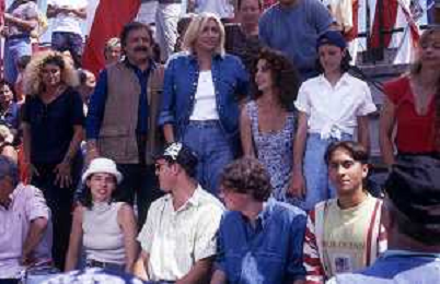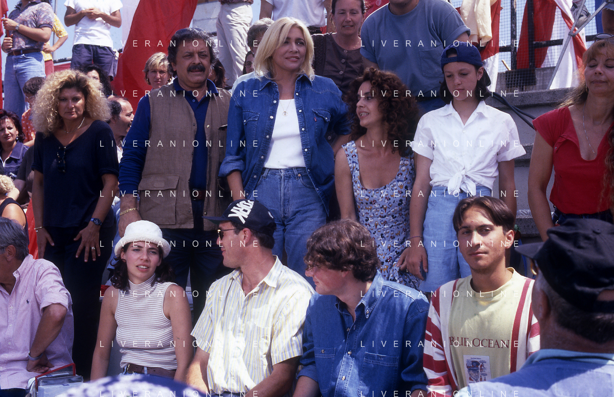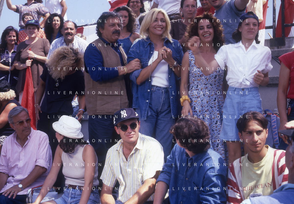 DIAP-RETROSPETTIVA MARA VENIER ATTIRCE E PRESENTATRICE TELEVISIVA NELLA FOTO LORENZO DE ANGELIS SUL SET DEL FILM“IL GOAL DI MARTIN PESCATORE “NELL'ANNO 1997 AG ALDO LIVERANI SAS