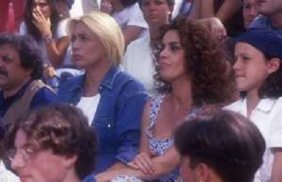 DIAP-RETROSPETTIVA MARA VENIER ATTIRCE E PRESENTATRICE TELEVISIVA NELLA FOTO MARA VENIER CON CATERINA SYLOS LABINISUL SET DEL FILM“IL GOAL DI MARTIN PESCATORE “NELL'ANNO 1997 AG ALDO LIVERANI SAS