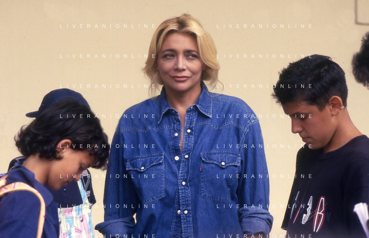 DIAP-RETROSPETTIVA MARA VENIER ATTIRCE E PRESENTATRICE TELEVISIVA NELLA FOTO MARA VENIER SUL SET DEL FILM“IL GOAL DI MARTIN PESCATORE “NELL'ANNO 1997 AG ALDO LIVERANI SAS